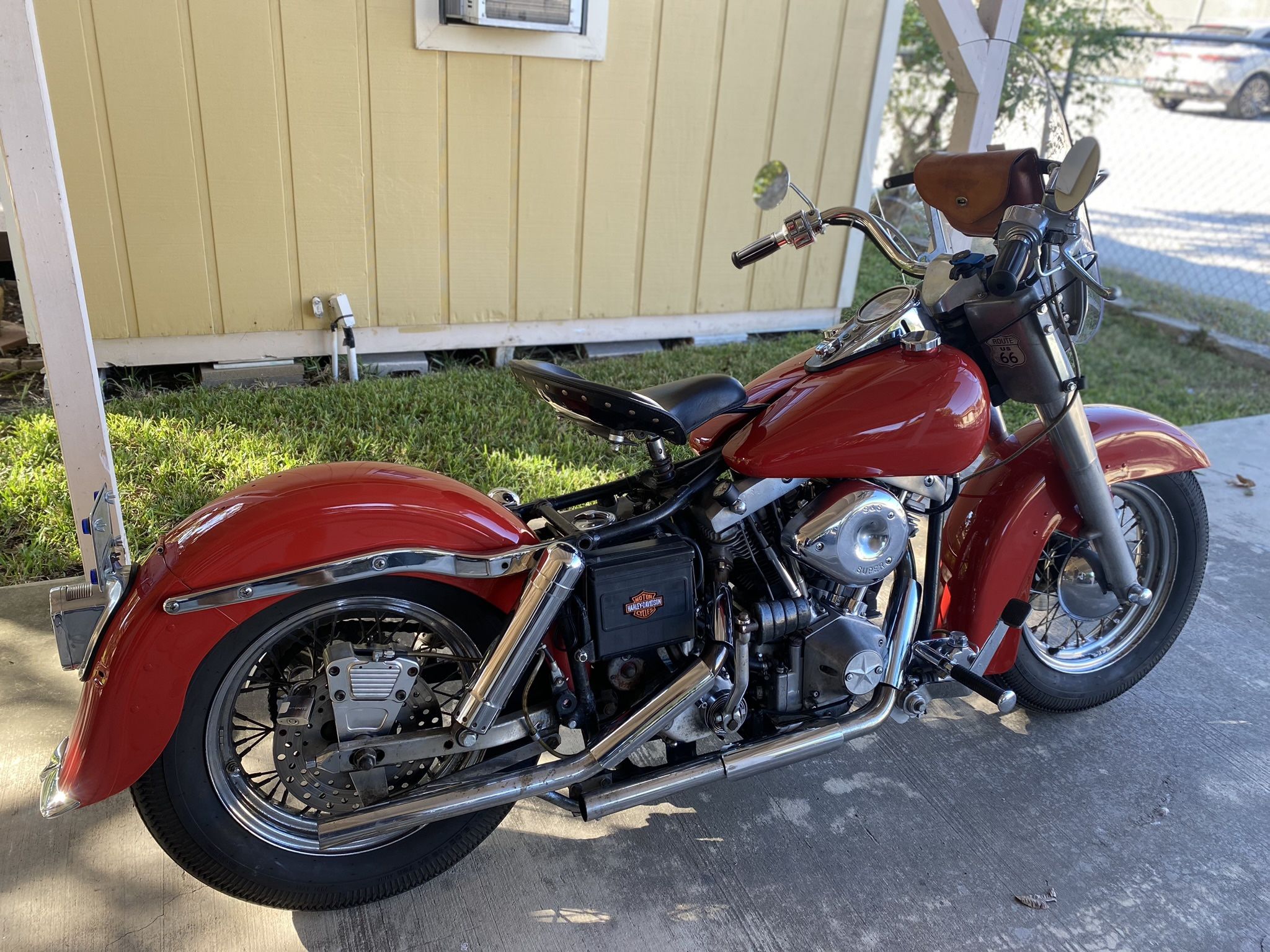 Up for sale is my 77 Harley FLH Shovelhead. I’ve owned this bike for about 3 years. When I picked up this bike and ride it home it leaked considerably. Replaced all the oil lines and added washers to the drain plugs which helped. Had the tins painted. The bike was primer grey when I got it. The only serious work I’ve had done is had Tommy at the Hog Haus give her a valve job. I’be replaced the rear shocks, rear brakes and both master cylinders. The tires are fairly new, show signs of little wear since I had them installed. The bike is currently at Schoeffer Bros. MC shop. They are replacing front fork seals and fork oil. So I won’t have it available for viewing for a couple of weeks.