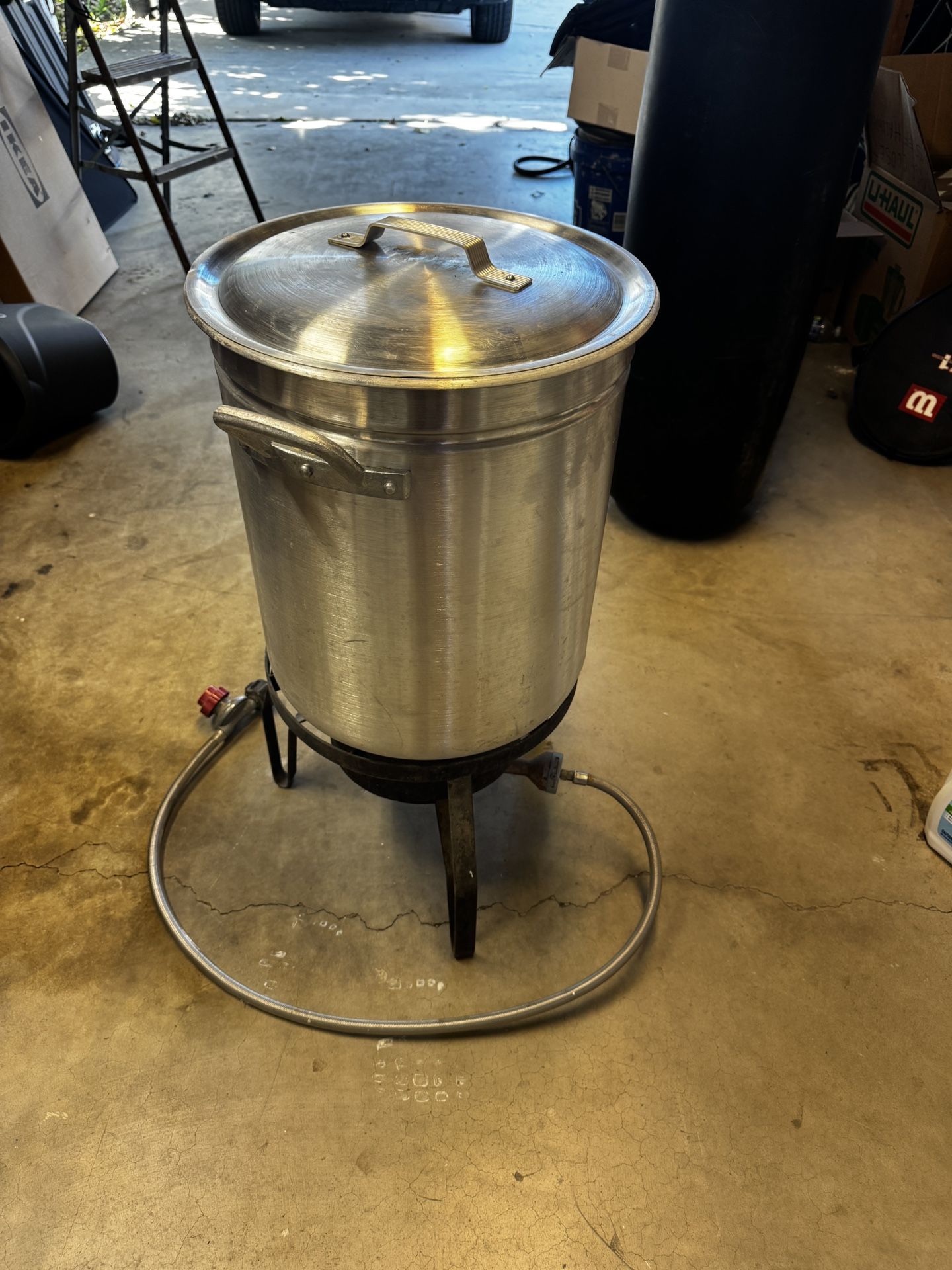 Crab and Seafood Boil Kit With Burner Can make iced tea Seafood boil Turkey fryer Used Works excellent Propane tank not included Local pick up only