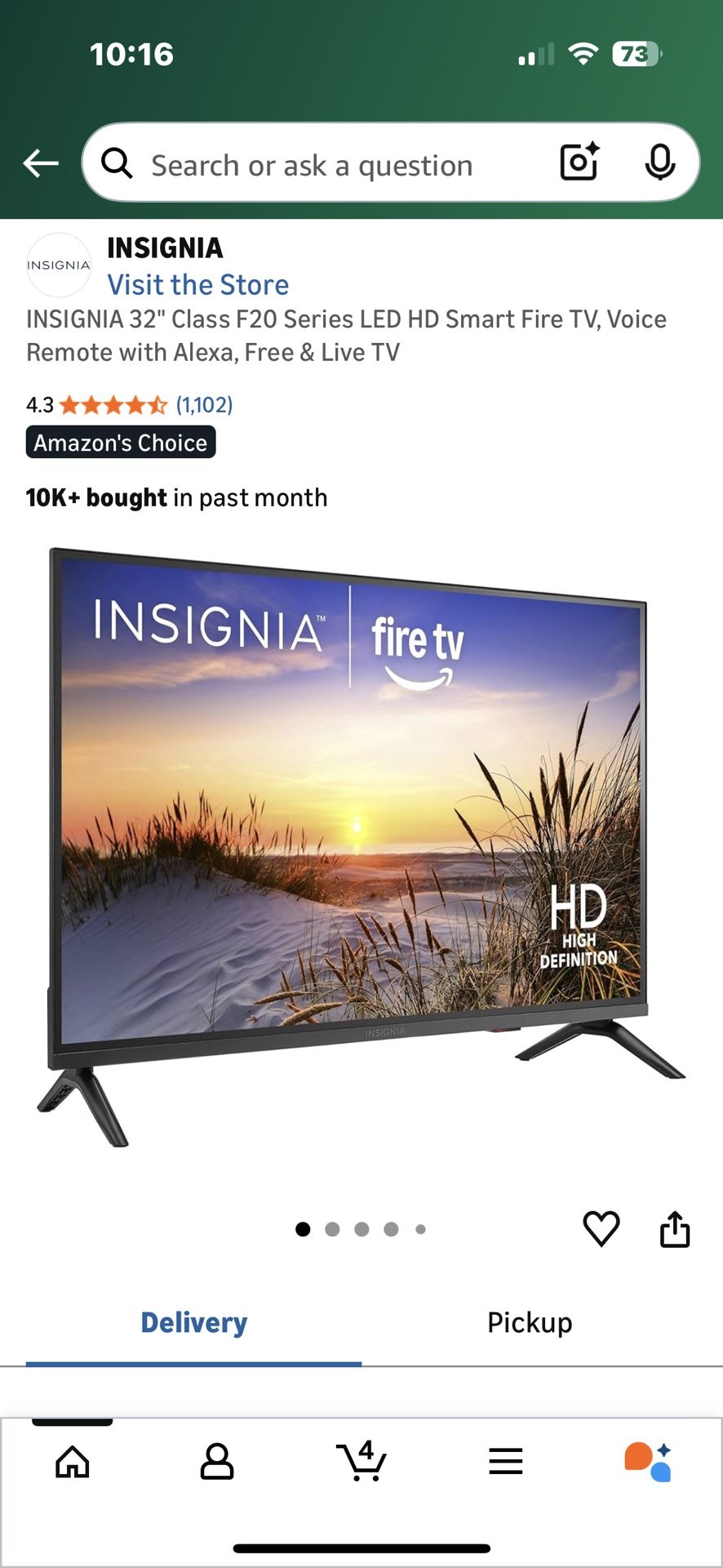 INSIGNIA 32" Class F20 Series LED HD Smart Fire TV, Voice Remote with Alexa, Free & Live TV