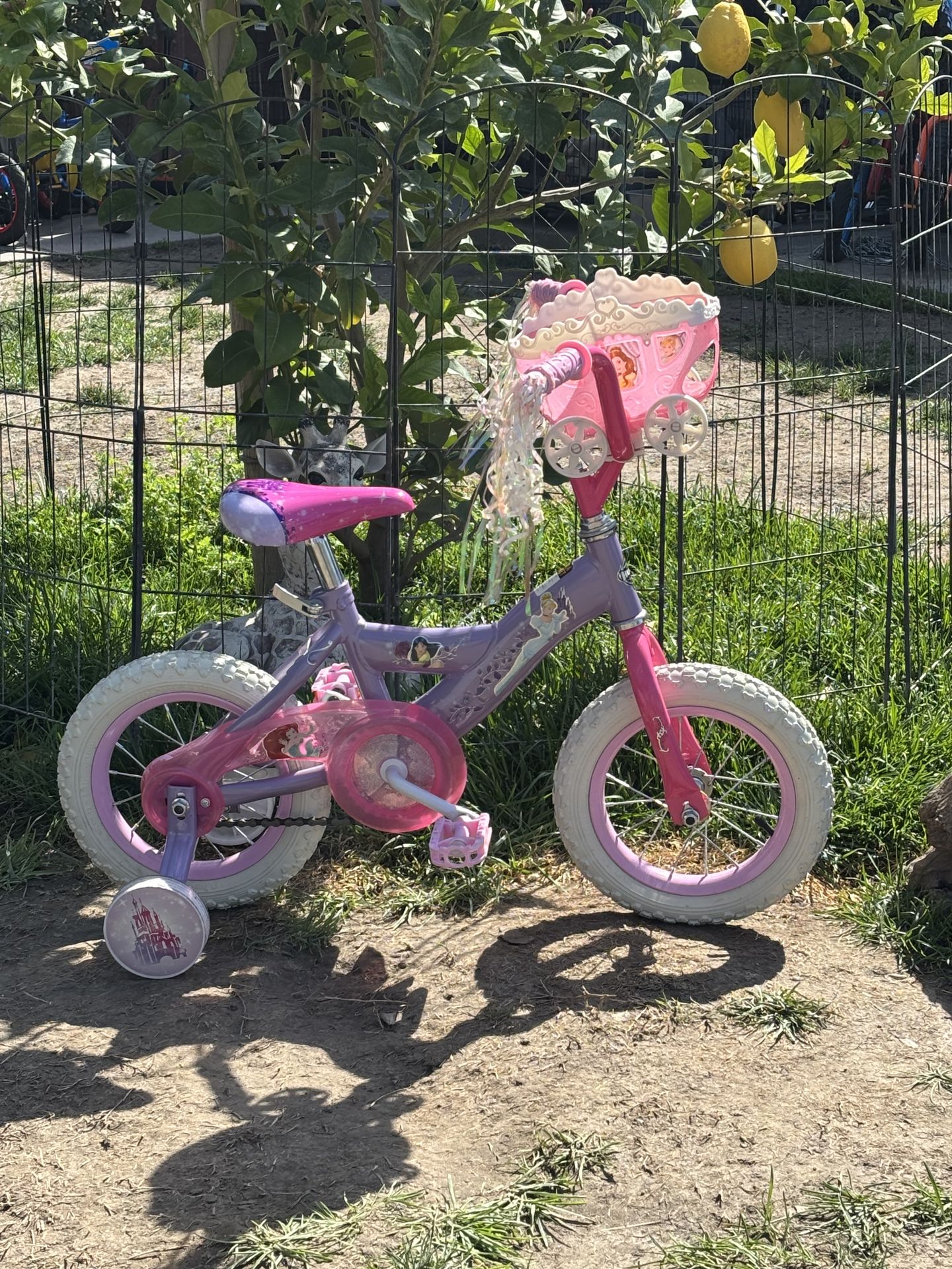 12 INCH TODDLERS GIRLS BIKE..HAS TRAINING WHEELS AND A BASKET..GREAT CONDITION..READY TO RIDE..DISNEY