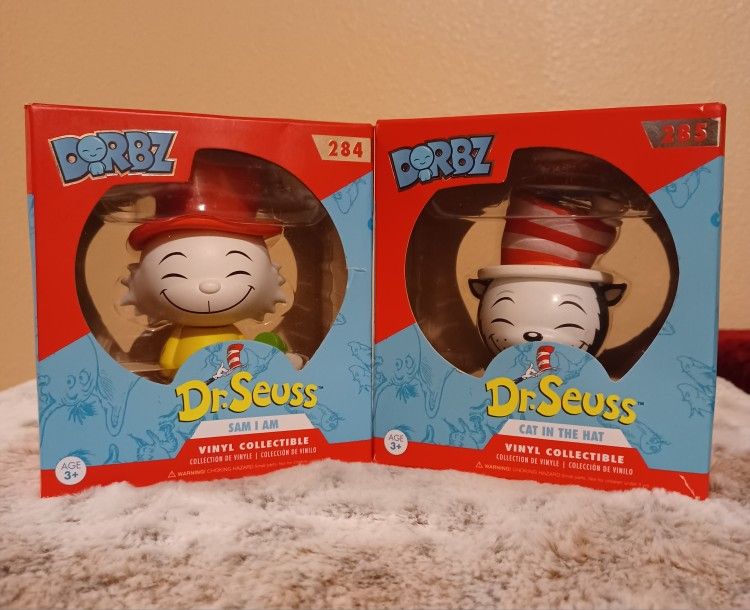 Set Of 2 Dorbz Funko Dr Suess 284 Sam I Am AND 285 Cat In The Hat Vinyl NRFB