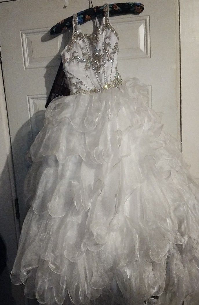 My daughter only wore one time maybe for 1 hour. It's very classy and elegant and would look beautiful on ur daughter .