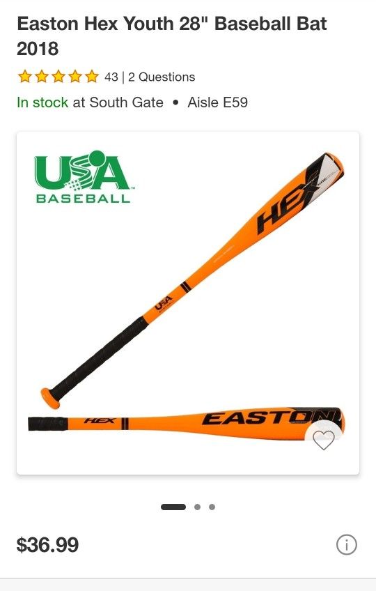 Easton hex youth baseball bat 28 inches Brand new never used Asking $25 Thank you
