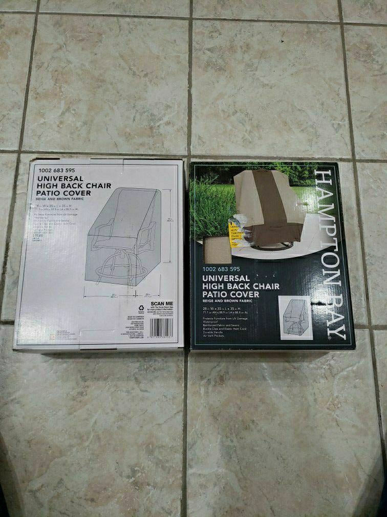 Hampton Bay universal high back chair cover Color is beige and brown Have two covers brand new in box $25 each. $40 for both If you are reading this they are still available Pick up in Midland /Tacoma area.