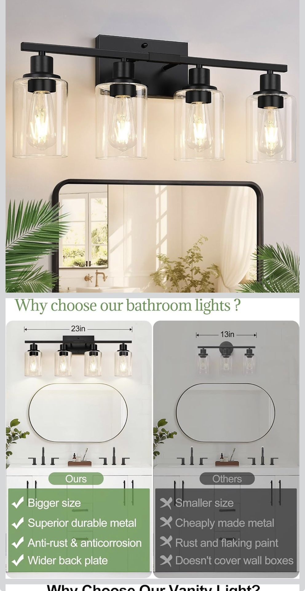4-Light Bathroom Light Fixtures, Matte Black Modern Vanity Lights with Clear Glass Shades, Bathroom Wall Lamp for Mirror Living Room Cabinet Bedroom P