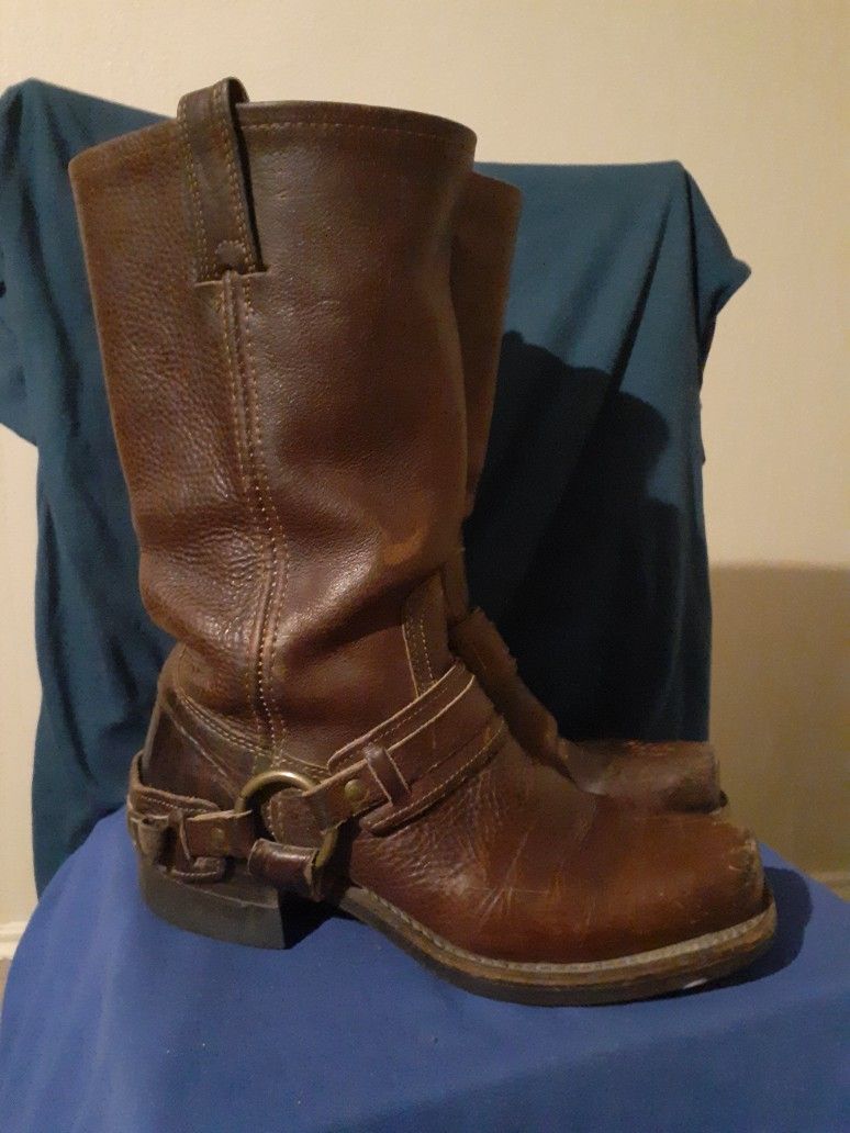 RARE🔥 FRYE Belted Harness Riding Boots Sz 7.5 M Brown Leather 77250 Vintage USA