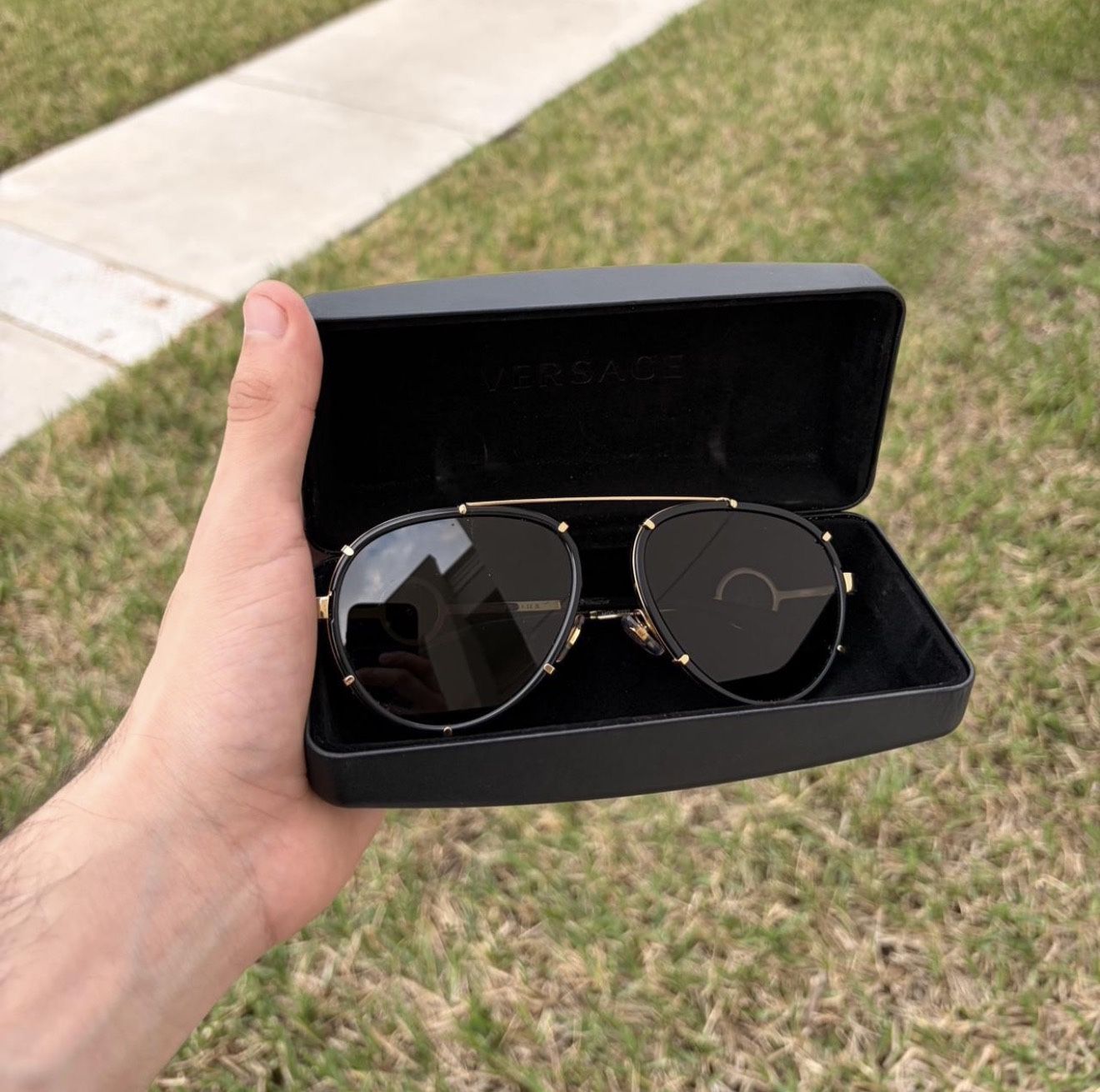 Versace Women's Black and Gold Sunglasses Auténtico