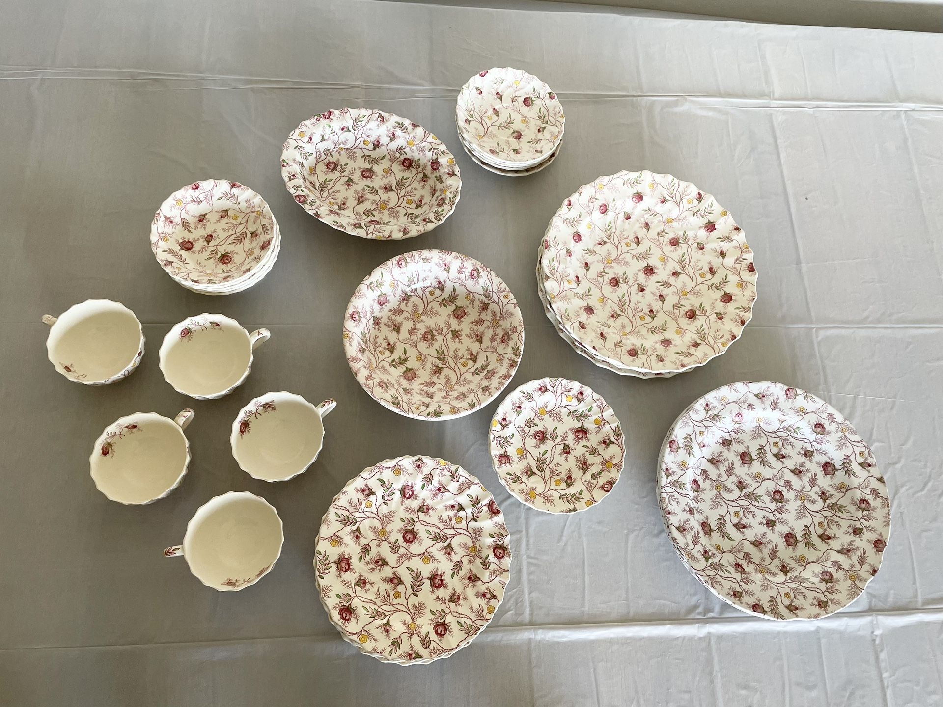 Vintage Copeland Spode Rosebud Chintz England Fine China 47pc