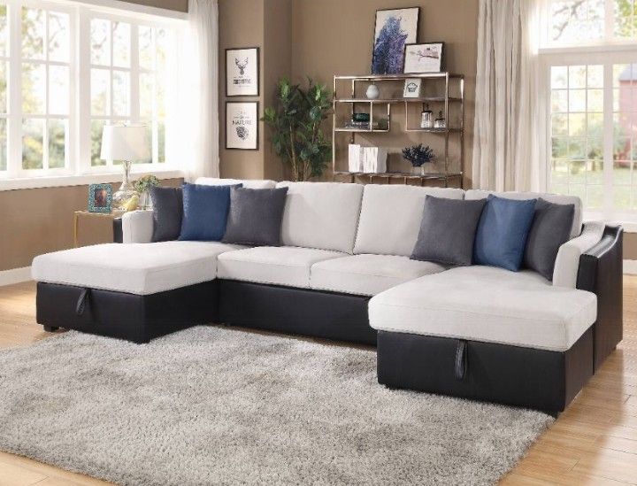 Includes: LF & RF Chaise both w/Storage, Armless Love w/Pull-out Sleeper (Full Foam) • Tight Back & Seat Cushion Dimensions: LF Chaise w/Storage 62"L x 36"D x 36"H Armless Love w/Sleeper 55"L x 35"D x 36"H RF Chaise w/Storage 62"L x 36"D x 36"H Materials: Fabric+PU, Frame: Wood (Eucalyptus+Ply), Foam (D), Metal Sleeper Mechanism, Plastic Leg 💥Easy financing approval 💥 🔹 Apply doesn't impact your credit 🔹High Quality 🔹Fast Deliver 🚛