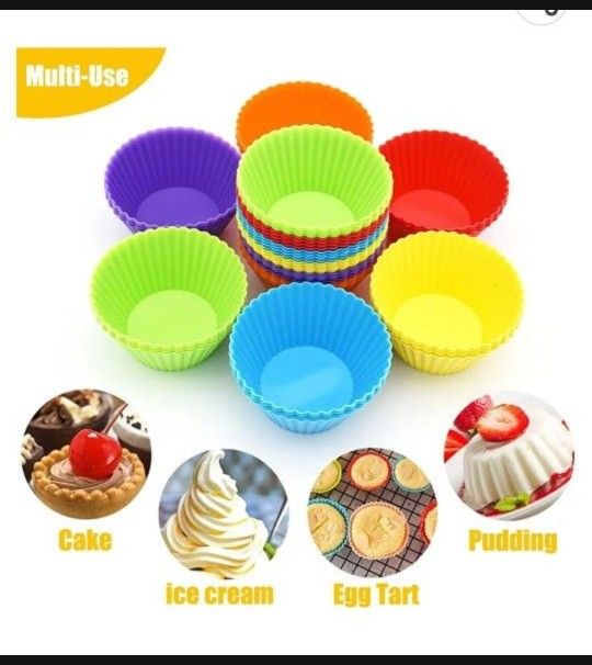 12-pack of reusable baking cups】 Made of 100% food-grade silicone, BPA free & free of odor, Ideal for baking muffins, cupcakes, pudding, tart, bread, mousse, jelly, conditioning food and more. 【Non-Stick & Easy Cleaning】Silicone Baking Molds are naturally non stick and easy release to make popping out perfectly shaped baked treats a breeze. Clean simply, very easy to clean with water or dishwasher. 【Premium Quality & Oven Safe】 Heat-resistant temperature is -104℉ to 446℉ (-40℃ to 230℃), safe for use in the oven, freezer, microwave and dishwasher with simple and durability, Enjoy baking time with family and friends at any time. 【Multi-use Muffin Molds】Silicone Cupcake Baking Cups are great for preparing pastry, breads, frozen desserts, and candy making, Perfect holder for sorting small items.Replace your paper cake cups, muffin pan or tin, with our environmentally safe alternative. 【Standard Size & Bright Color】2.75 ×1.69 × 1.34 inches (top × bottom × high), Set of 36 pcs, 6 Rainbow Colors (6 cups of each color CSKU-A4