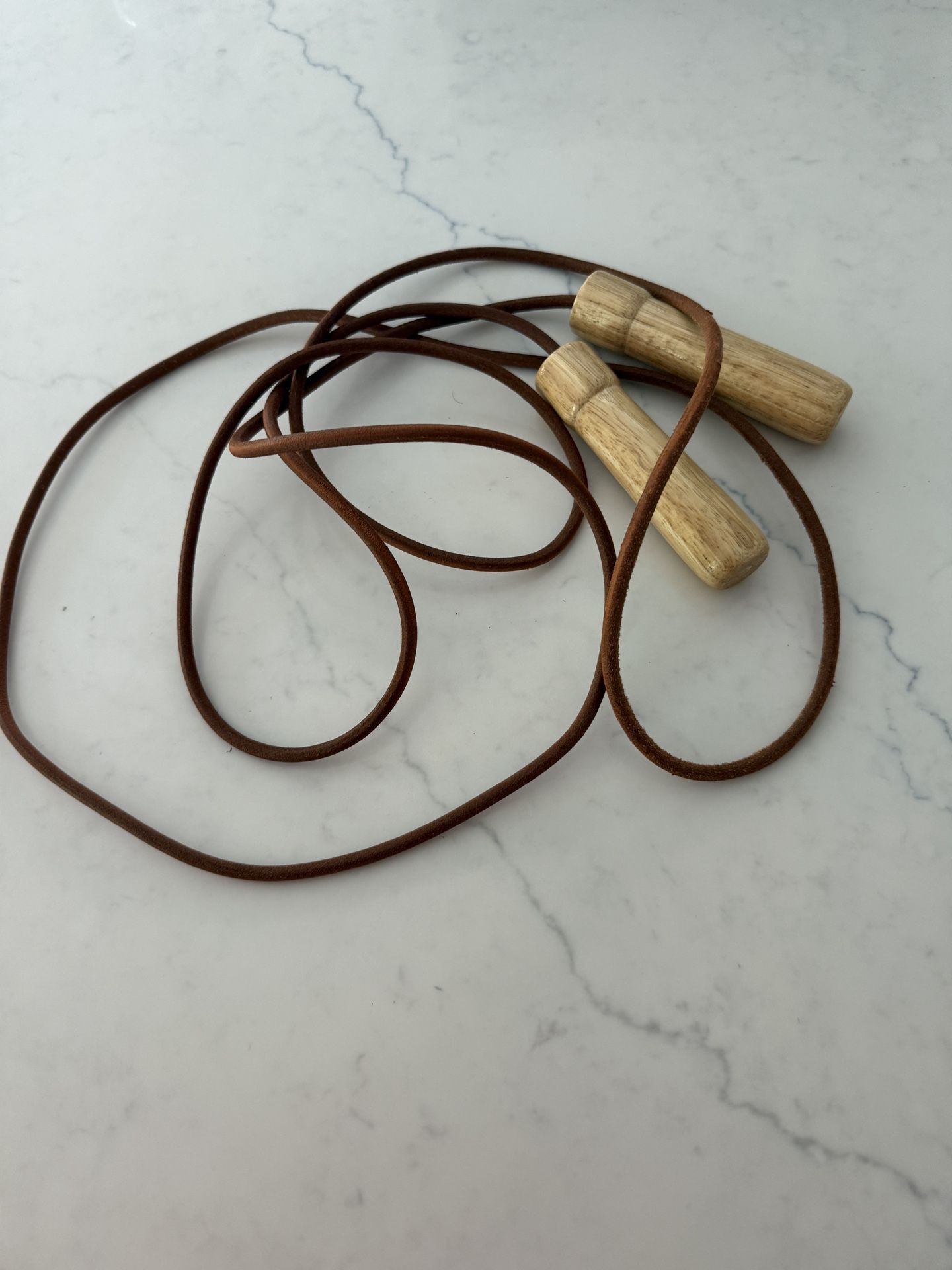 Body fit leather jump rope. Perfect for your next gym or training session. Crafted with high-quality leather materials. This Jump rope promises, durability and longevity. These resistant ropes feature ball bearings that provide a smooth evenly distributed rotation. Comfortable padded handles. 9 feet long. I can ship this item for an additional seven dollar fee