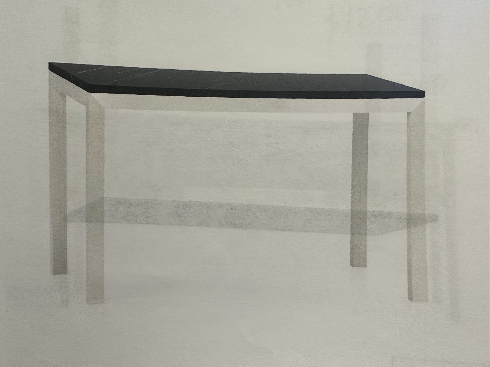 Parsons Black Marble Top/ Stainless Steel Base 48x28 Dining Table Black marble Top: Polished black Marquina marble over a honeycomb aluminum core to reduce weight and limit cracking. Base: Brushed stainless steel. Design: Features a simple frame with square legs. Details: Includes levelers and foot caps. Brand: Exclusive to Crate and Barrel