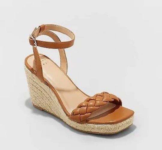 Add the perfect flair to your summer gatherings and getaways with these Joyce Wedge Heels from A New Day. Set on a 3.75-inch wedge heel with a raffia-like rope design, these espadrille-inspired sandals boast memory foam insoles to help keep you walking in comfort The wedge sandals have a braided front band, a square open toe, and an ankle strap with an adjustable buckle fastening, accompanied by faux-leather accents for classic styling. A New Day style that goes wherever you do. 3.75in wedge-heel sandals •Braided front band •Buckled ankle strap •Square open-toe and open-back design •Memory foam insole •Textured, rubber-like outsole Size 6