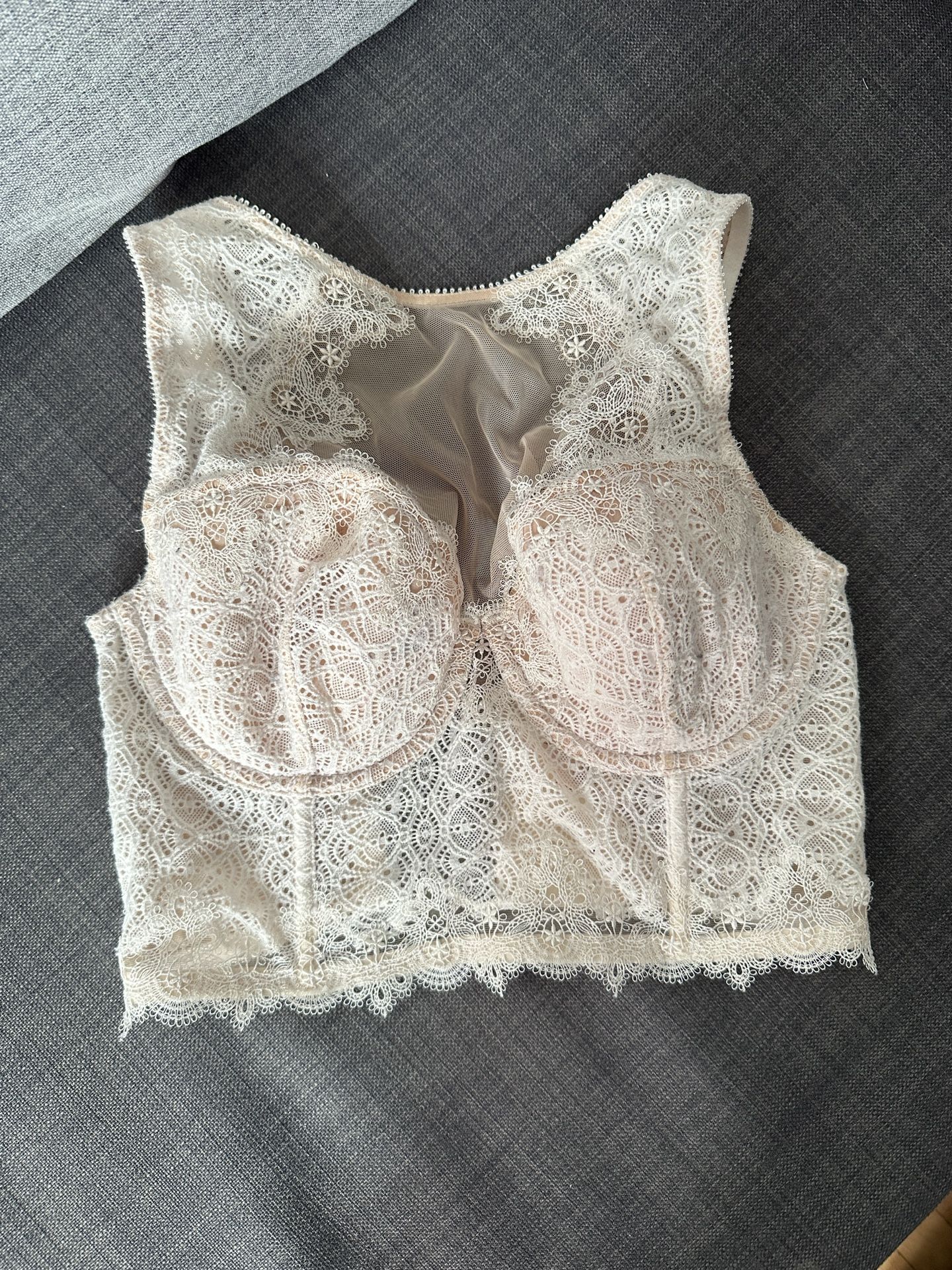 VICTORIAS SECRET LINED DEMI LACE Longline Cami BRA High Neck IVORY 32DD