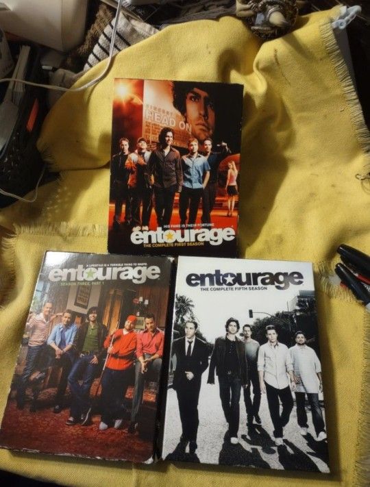 PRICE FIRM this is a good TV series perfect for anyone that wants to build up their collection of Entourage the TV series your will receive season 1 season 3 part 1 and season 5 they're all complete work amazing with no issues they all come from a smoke-free environment they have only been on display for most of their life I am downsizing my DVD collection now is your chance to upgrade your collection we will not separate but I may be willing to trade for a couple PS2 video games