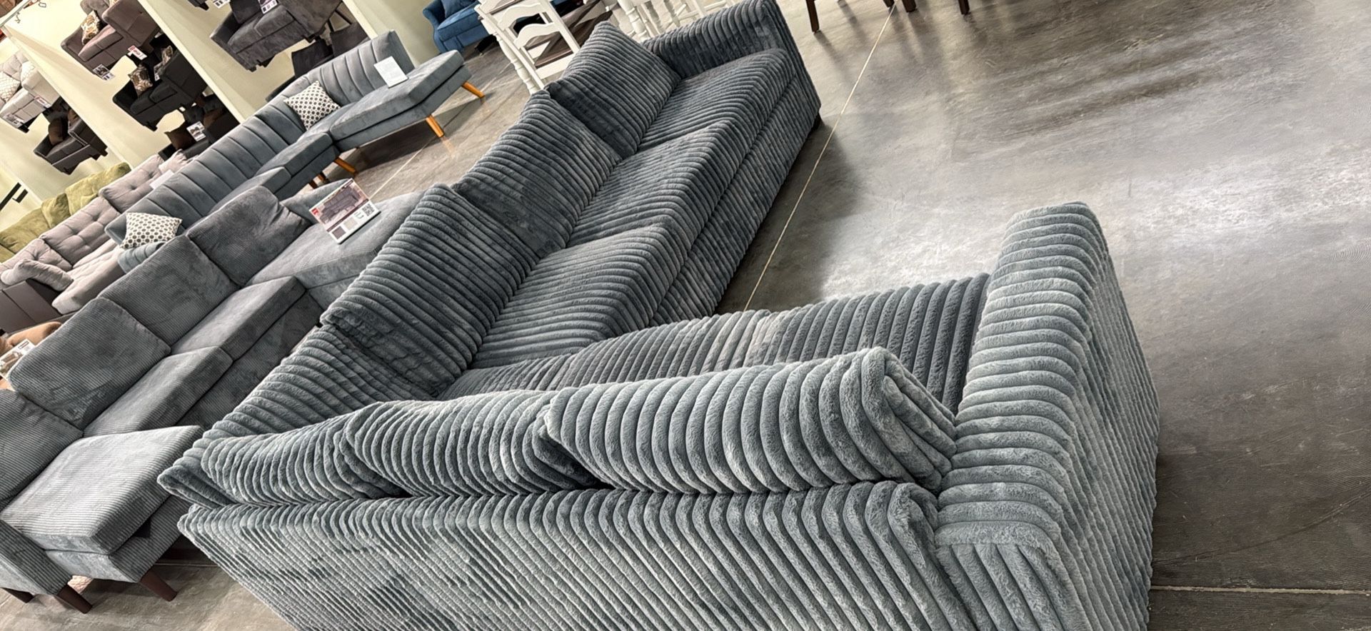 Furry corduroy sectional couch 119x92x34📏 Brand new in boxes 📦 NO SHOWROOM DISPLAY NO SET UP $60 delivery to San Diego area Firm price cash only I’mlocated in Moreno Valley pick up by appointment Firm price