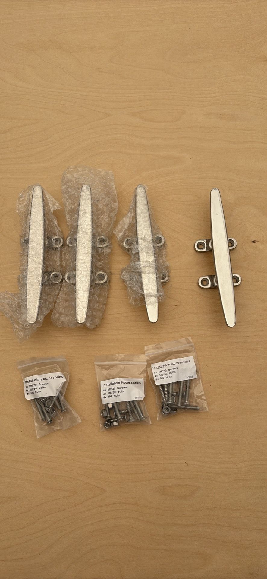 Zomchain 8” boat cleats. Go for $23 each on Amazon. Missing 1 hardware bag.