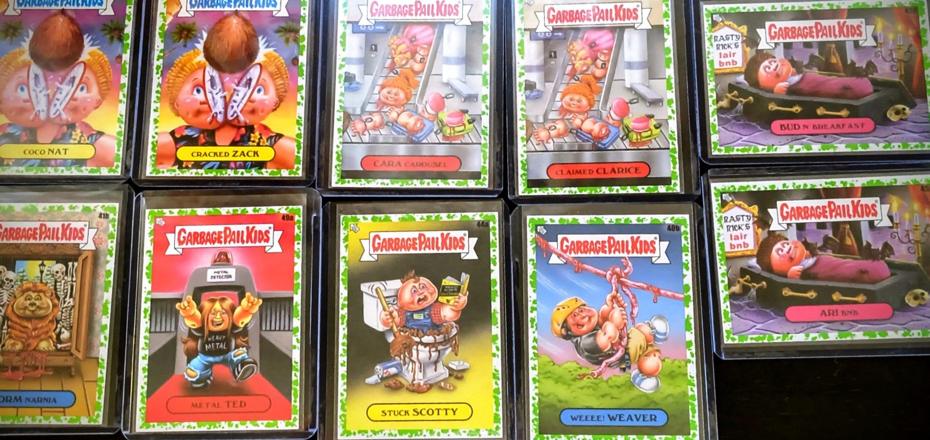 Lot of 10 Topps Garbage Pail Kids Booger Green Parallel cards.