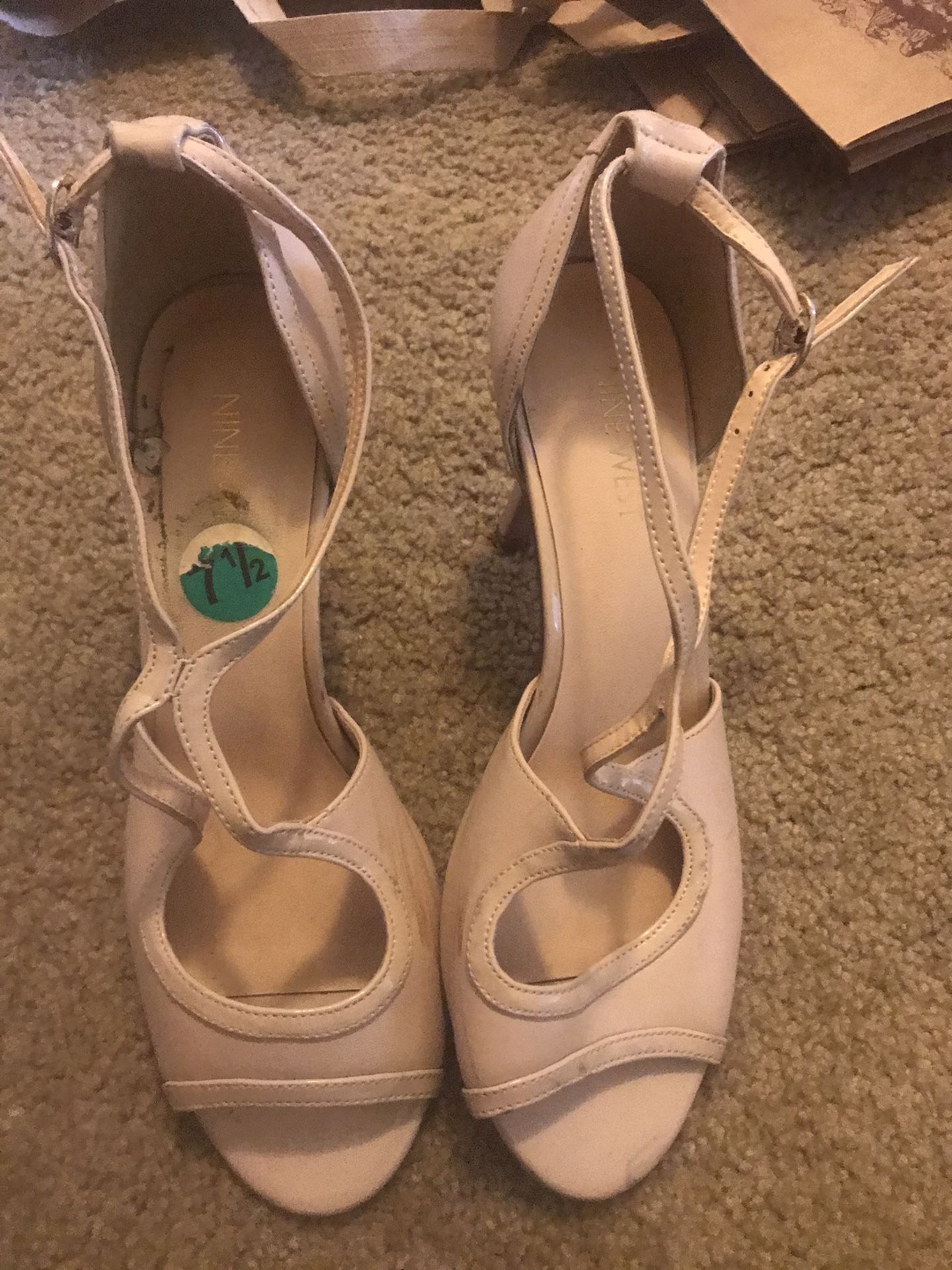Cream color girls high heels 7.5 footwear. Good condition wore once or twice.