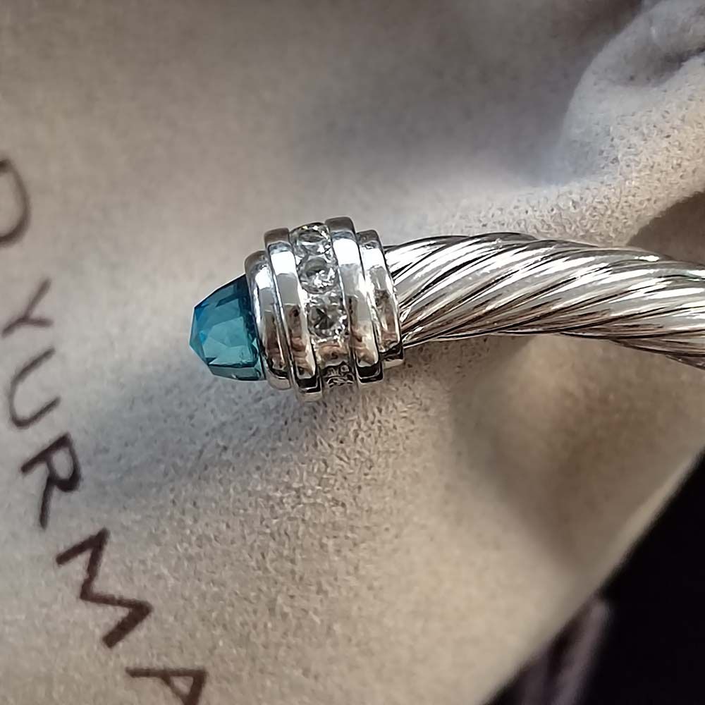 "Sterling silver and Pave Diamonds Blue topaz Bracelet, 5mm Hallmarked ""© DY"",""925"" Comes with original box and dust bag Worn only twice, used with care, no scuffs or scratches"