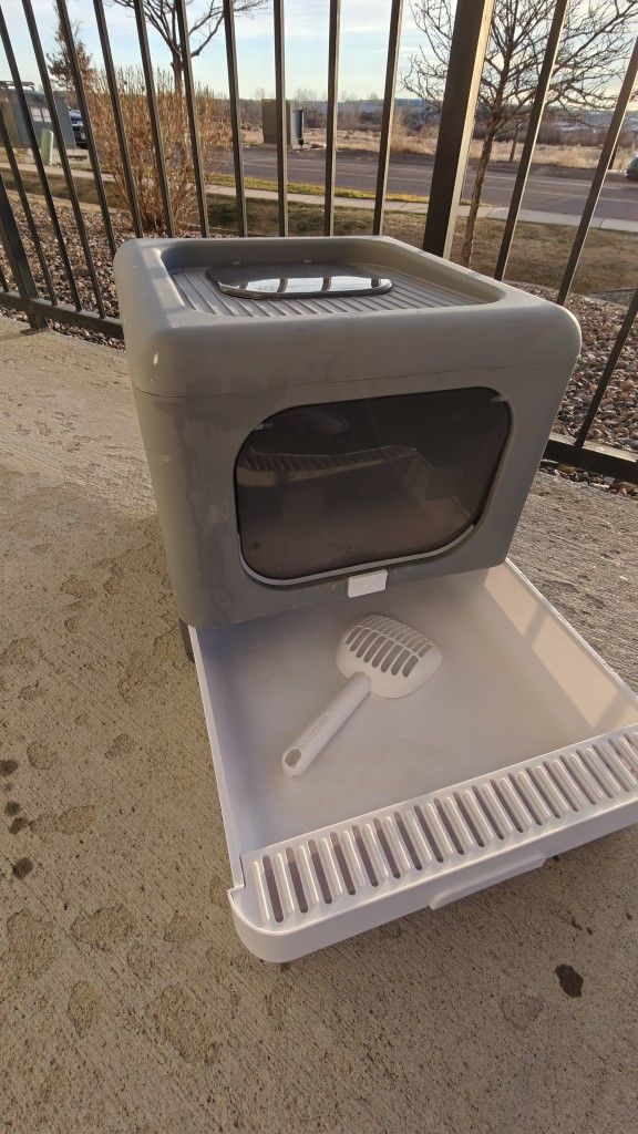 Foldable Cat Litter Pan | XL Top Entry Design Space Saving, Odor Locking, Anti Splatter Solution for Your Home (Grey)