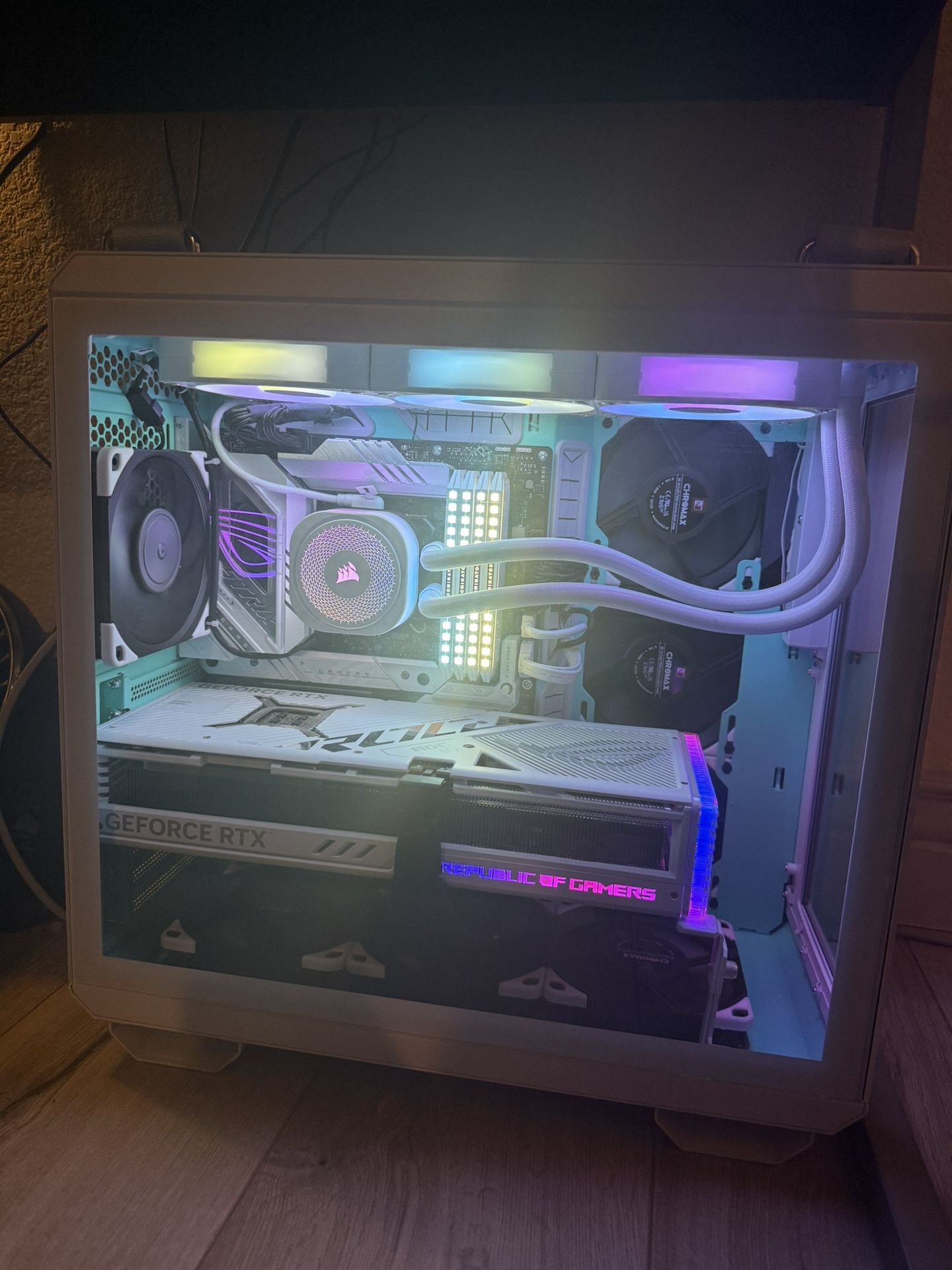 Newly built to sell! Just purchased additional $850 parts brand new Asus TUF GT502 case New Asus case fan Noctua fan controller Samsung m.2 990 Pro 2TB SSD Corsair icue link Titan 360RX New from storage Intel i9-13900k 64gb ram 1300w psu NO GPU Interior Case custom teal paint