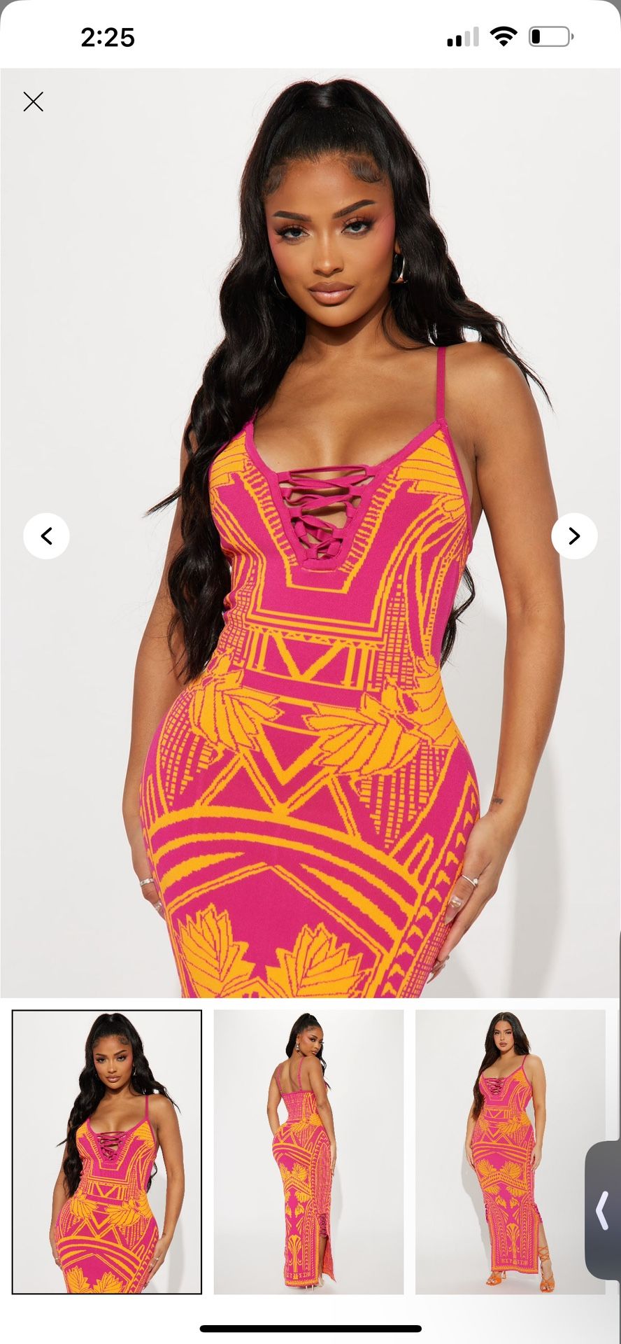 Pink and orange maxi dress with peek boo size large good stretch and thick