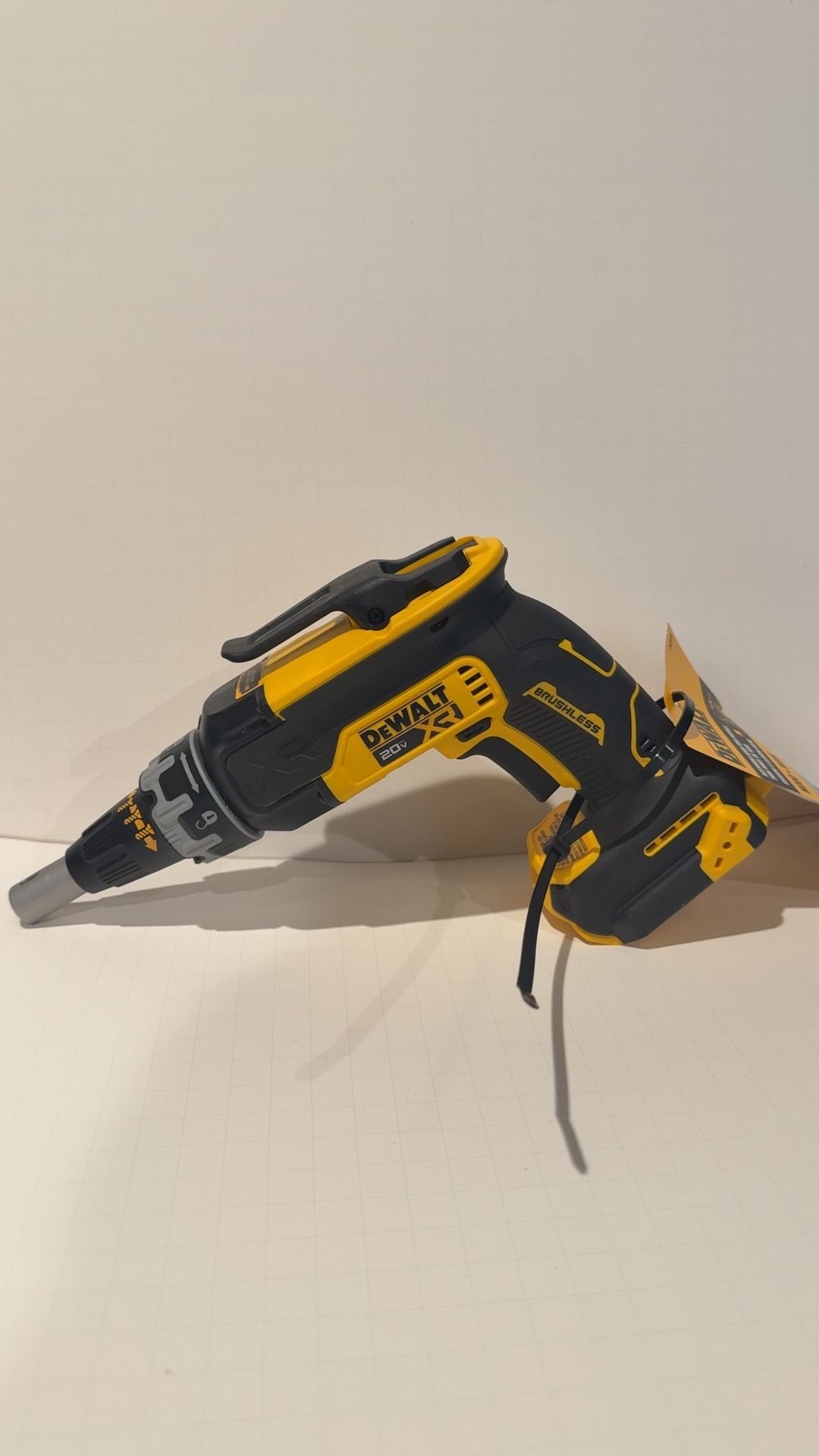 Brand new, no box! The DCF630 Brushless Drywall Screwgun features a brushless motor and electronic mode select to help optimize usage in a range of drywall hanging applications. Four dedicated tool modes enable operation of the screwgun in Trigger Mode (High Speed), Trigger Mode (Low Speed), PushStart Mode, and Lock-On Mode. A top-mounted electronic mode select enables fast, one-handed switching between the tool's four modes. The DCF630's compact size and weight are designed to reduce fatigue during periods of extended usage, while its wide upper grip flange enables secure placement of thumb and forefinger.