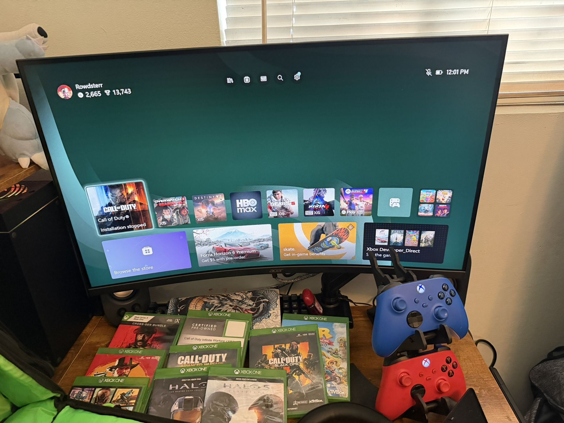 Xbox good condition everything is barely used 2 Xbox controllers batteries Xbox wireless headphones controller and headphones stand Xbox travel bag 4 batteries and charger 6 games used Xbox fan spent over 1000 of everything in total