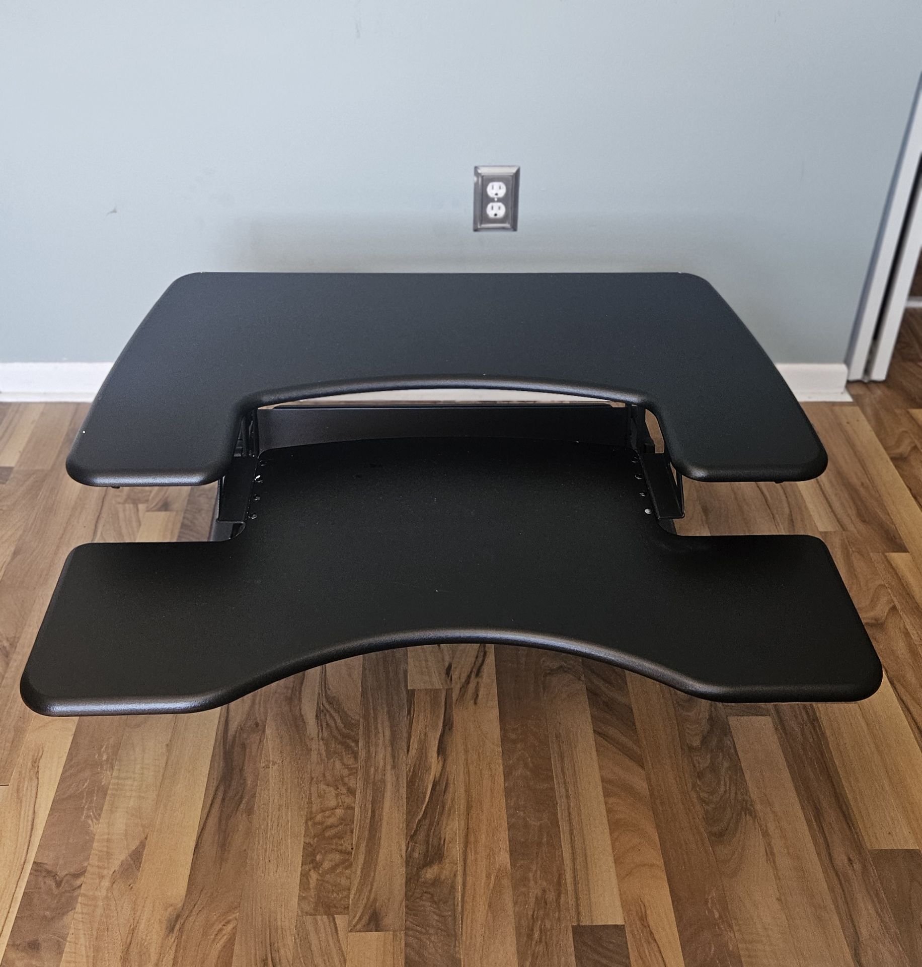 Video Proof of it Operating Here👇: https://offerup.co/faYXKzQFnY?$deeplink_path=/redirect/ 36" wide sit/stand desk converter * Fits dual monitors. * Smooth lift * 11 height settings * Fully assembled and works perfectly. * Very sturdy and clean. Great for home office setup - Remote Worker Reason for Selling: I moved out of my podcast studio and no longer need it. I can't take it with me, so I'd like for another to use it.