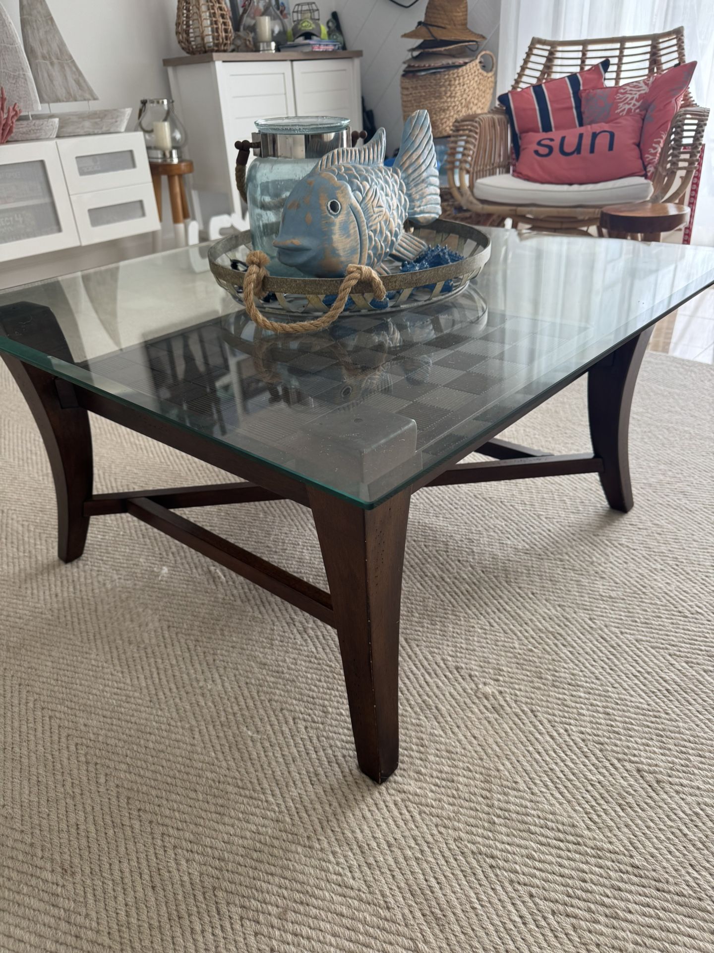 Wooden Glass Top Table (Set of 2)