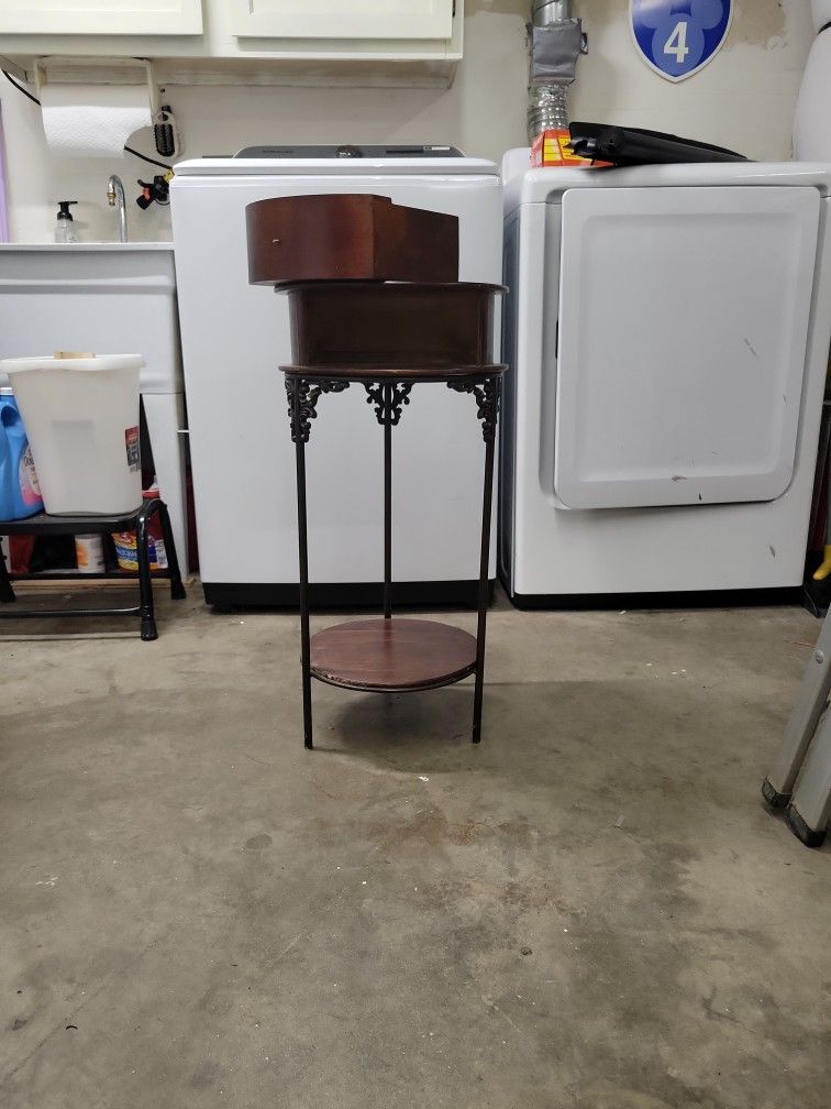 28" Tall x 13 1/2 wide round side table. Pick up only . Missing knob.