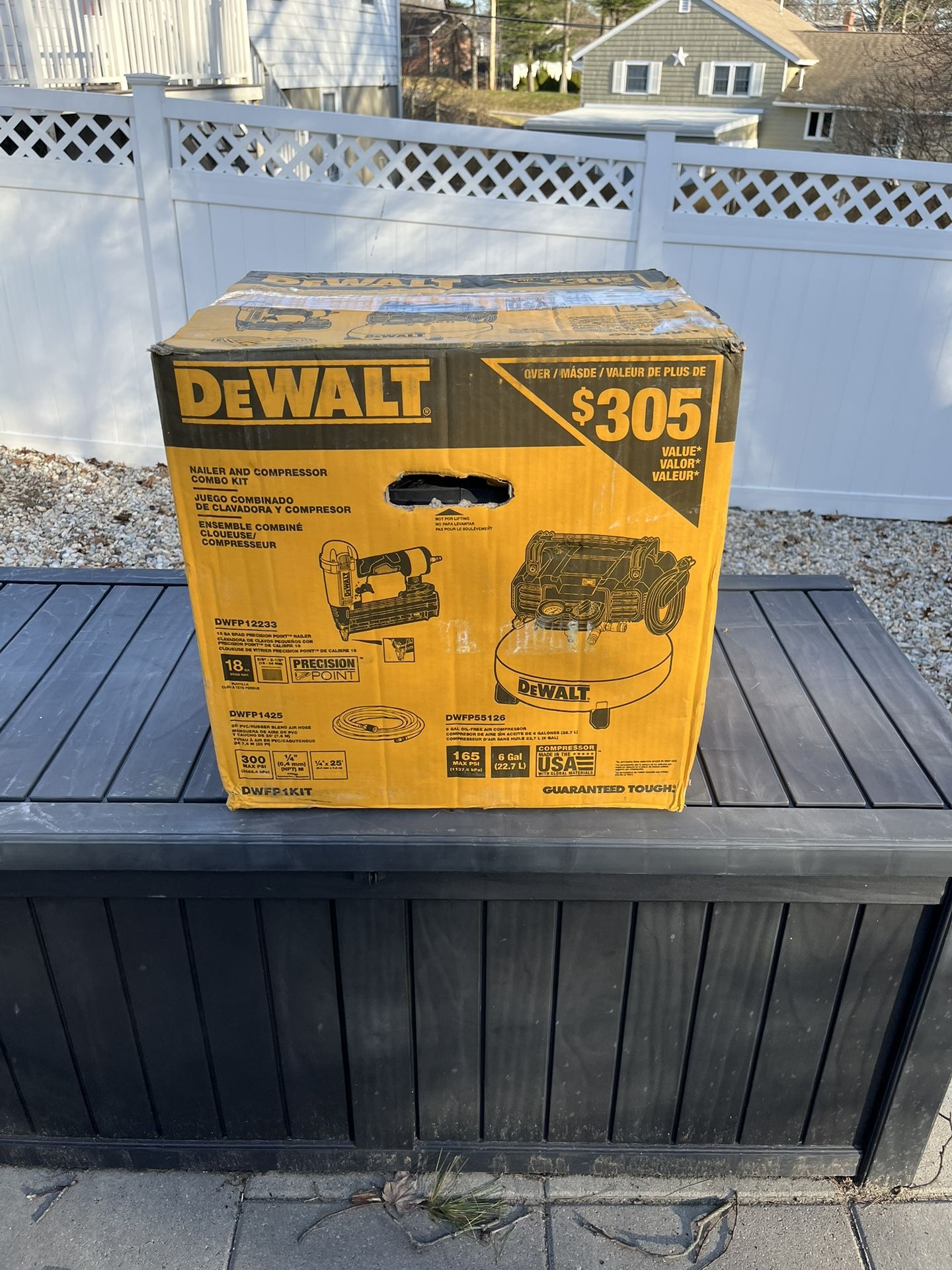 I’m selling this BRAND NEW DEWALT 120 PSI Compressor Combo Kit with Nailer Model: DWFP1KIT. This is New In The Box and I’m asking only $175
