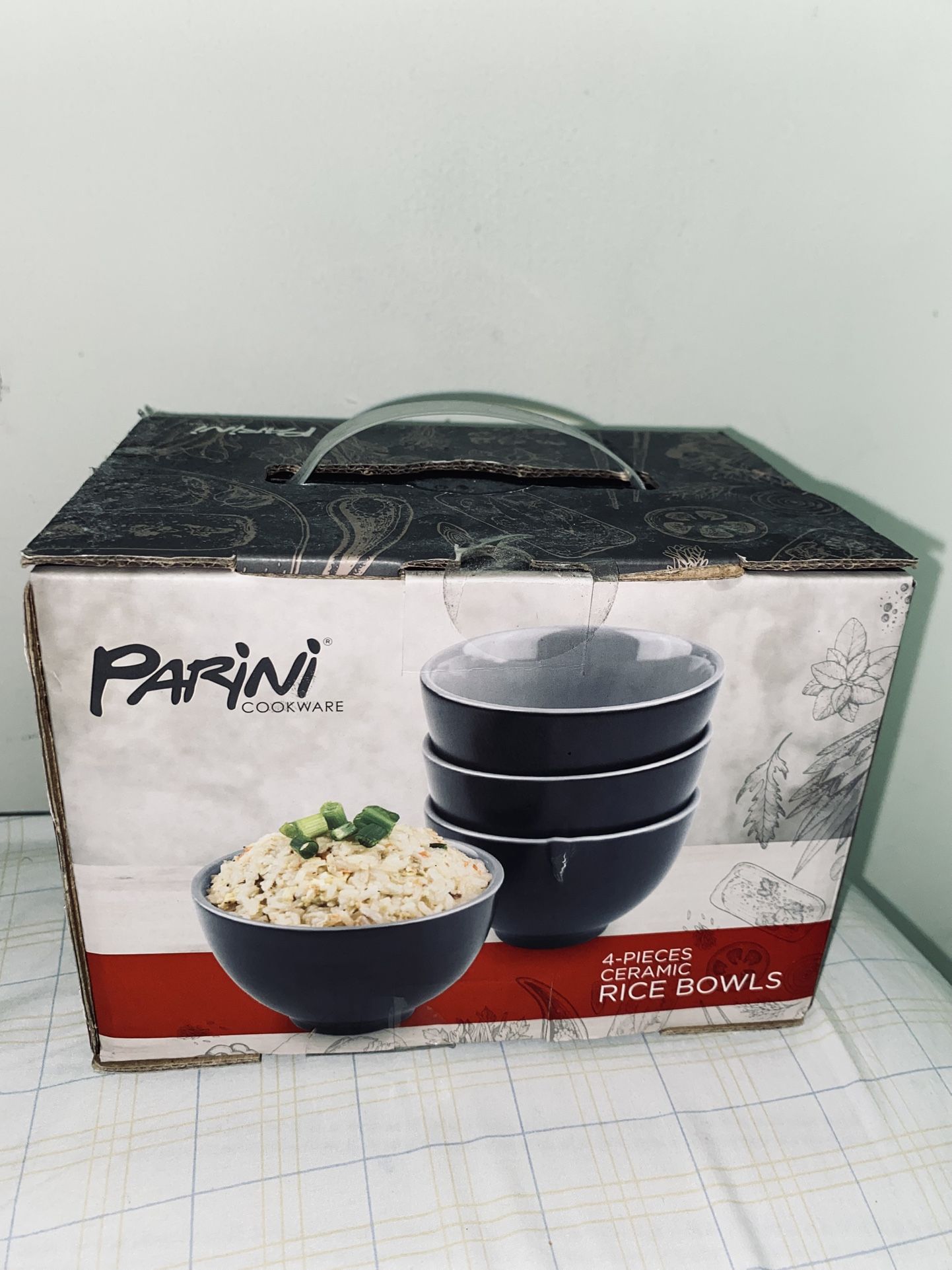 4 gray ceramic bowls. Never used. Still sealed in box. I have two sets. For one set it’s $10. $18 for both. Pick up zip code 22309