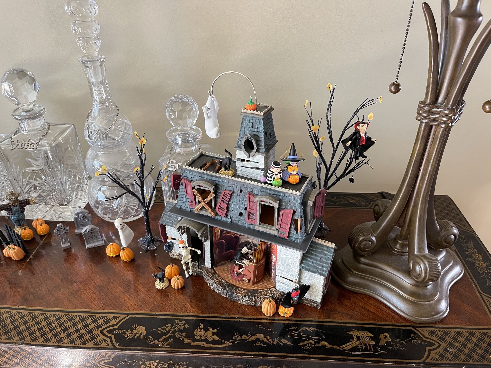 Hallmark Mansion on Ravenwood Lane 2004 with Hallmark Halloween Ornaments from 2003-2005