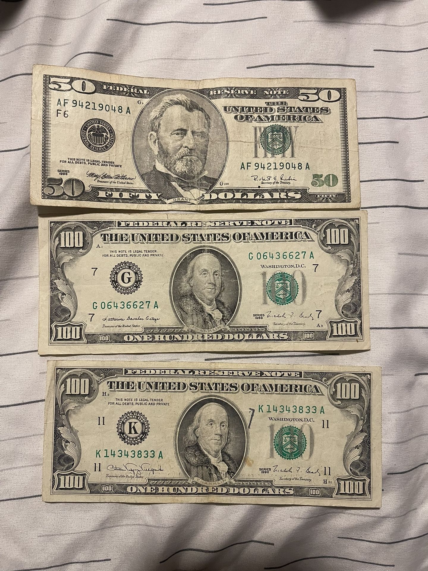 1990 $100 bill 1988 $100 1996 $50 $300 for all 3 bills