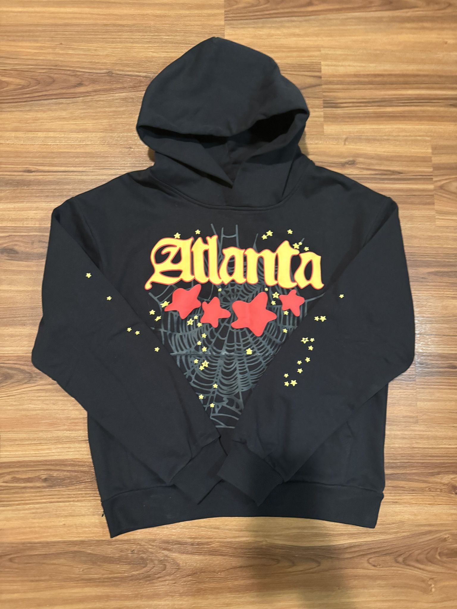 Sp5der Atlanta Graphic Hoodie Black Pullover Star Web Design NEW