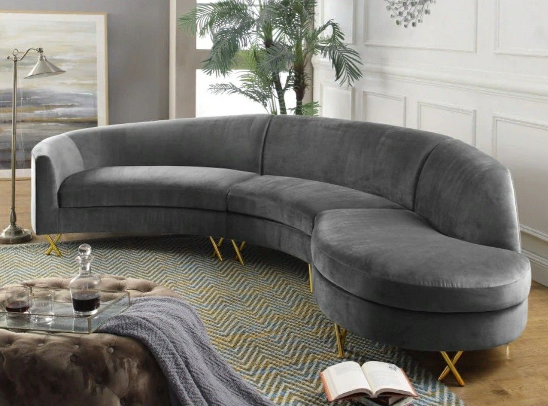 Serpentine Velvet 3-Piece Grey Sectional