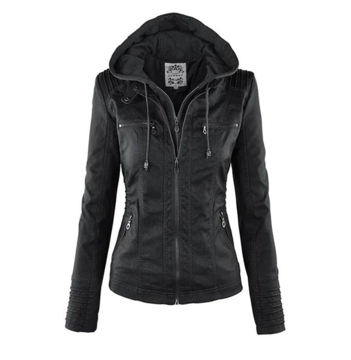 Faux leather jacket w/ hoodie