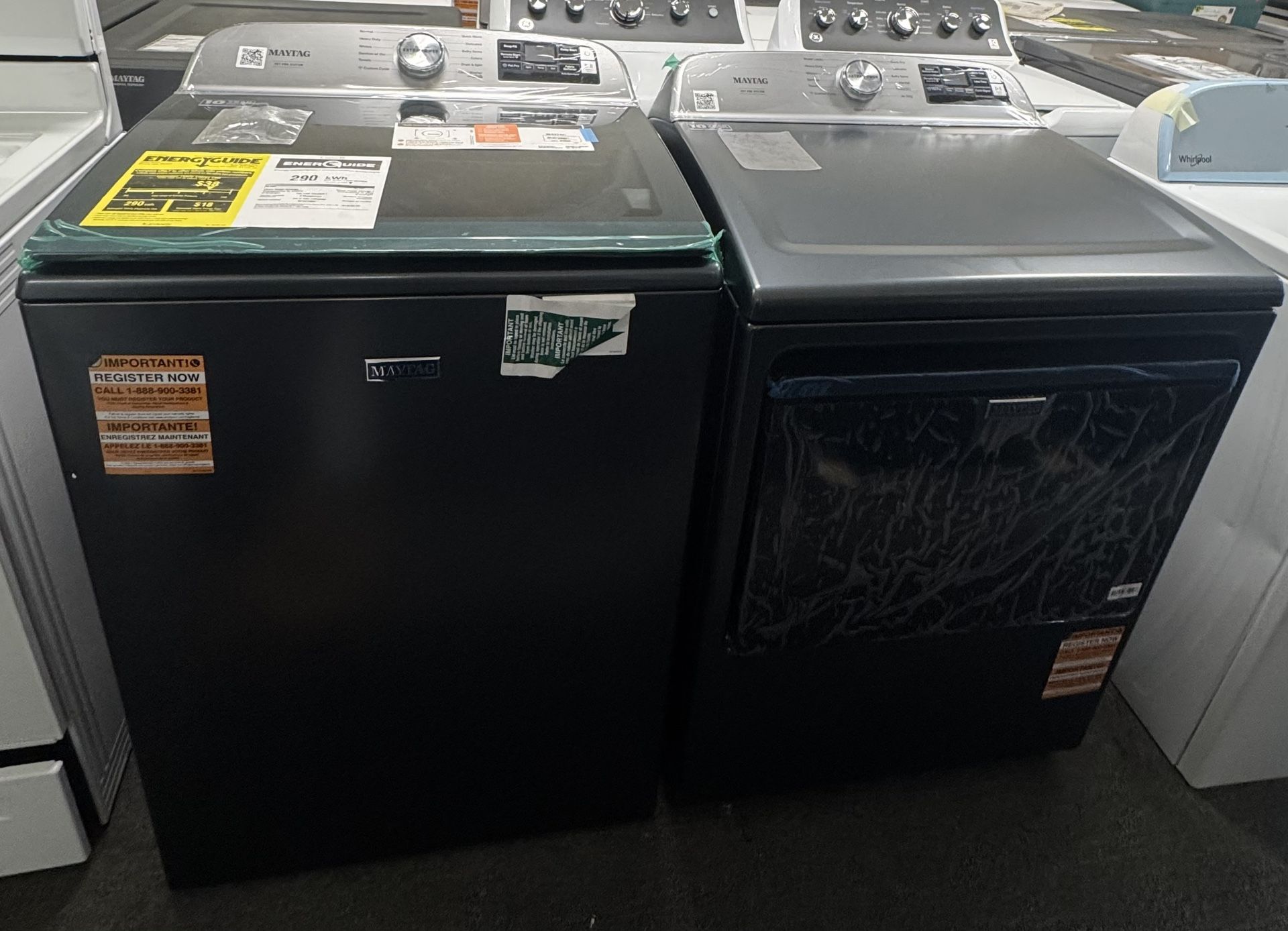 New Maytag Pet Pro Top Load/ Electric Dryer w/ • 5.3 Cu. Ft. Capacity • Pet Pro System • Pet Pro Option • Pet Pro Filter • PowerT™ Impeller • Extra Power Option • Built-In Water Faucet • Deep Fill Option • 12 Wash Cycles Height: 42.875 Width: 27.375 Depth: 27.75 • 7.4 Cu Ft. Capacity • Pet Pro System • Extra Power Option • Heavy-Duty Hinges • Wrinkle Prevent Option with Steam • Steam-Enhanced Dryer • 13 Cycles • 7 Options • Smart w/ WiFi Connectivity, MAYTAG APP Height: 43.25 Width: 27 Depth: 29.875