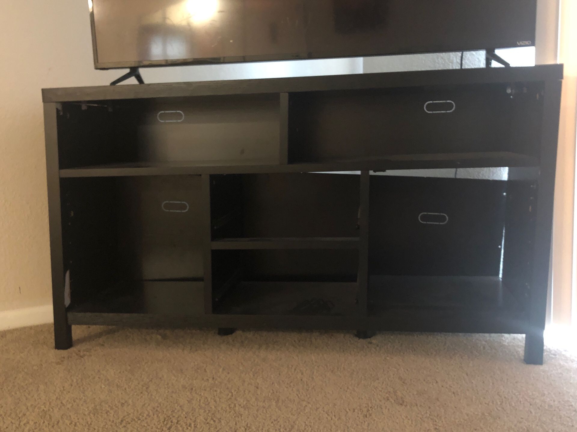 Gentally used tv stand . Not completely put together but we still have all the other parts for it .
