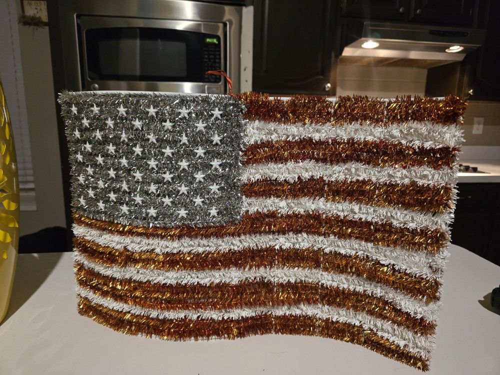 Must pick up in Rowlett 75088! New glittery flag, u can hang it up. Measures 19 1/2" x 13 1/2"