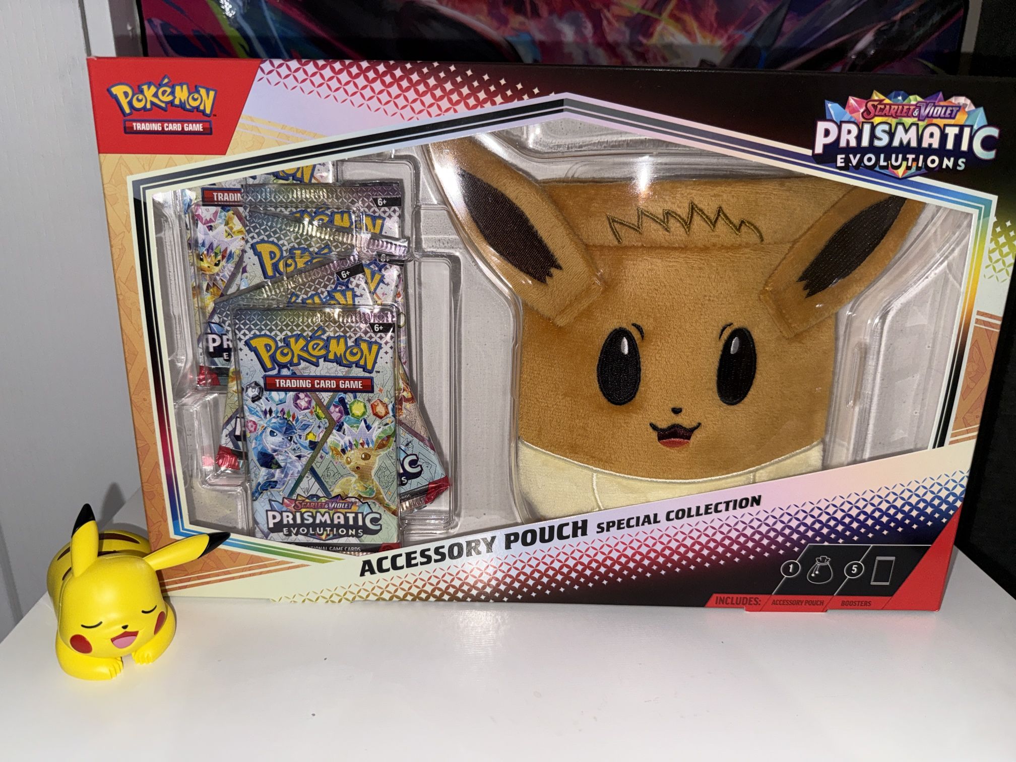 Pokemon Prismatic Evolutions with Accesory Pouch!✨💖🐰 Amazing packs and a great gift set! ✨$65✨ Thank you for checking out my collection!! Meet up locations: 📍El Monte/ South El Monte 📍Baldwin Park 📍Pico Rivera/ Montebello 📍Whittier