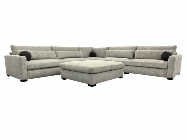 The Hercules Sectional is named for a reason. This huge sectional is a real statement piece covered in a soft gray chenille. Architectural round charcoal pillows add a designer touch. Best of all, this sectional is hugely comfortable. With supportive lumbar pillows and a deep seat, you’ll find it hard to convince yourself to do anything but relax. Financing Options Are Available Through Acima & Synchrony Call Ahead for a 2 hour hold. 130"L x 130"W x 35.5"H