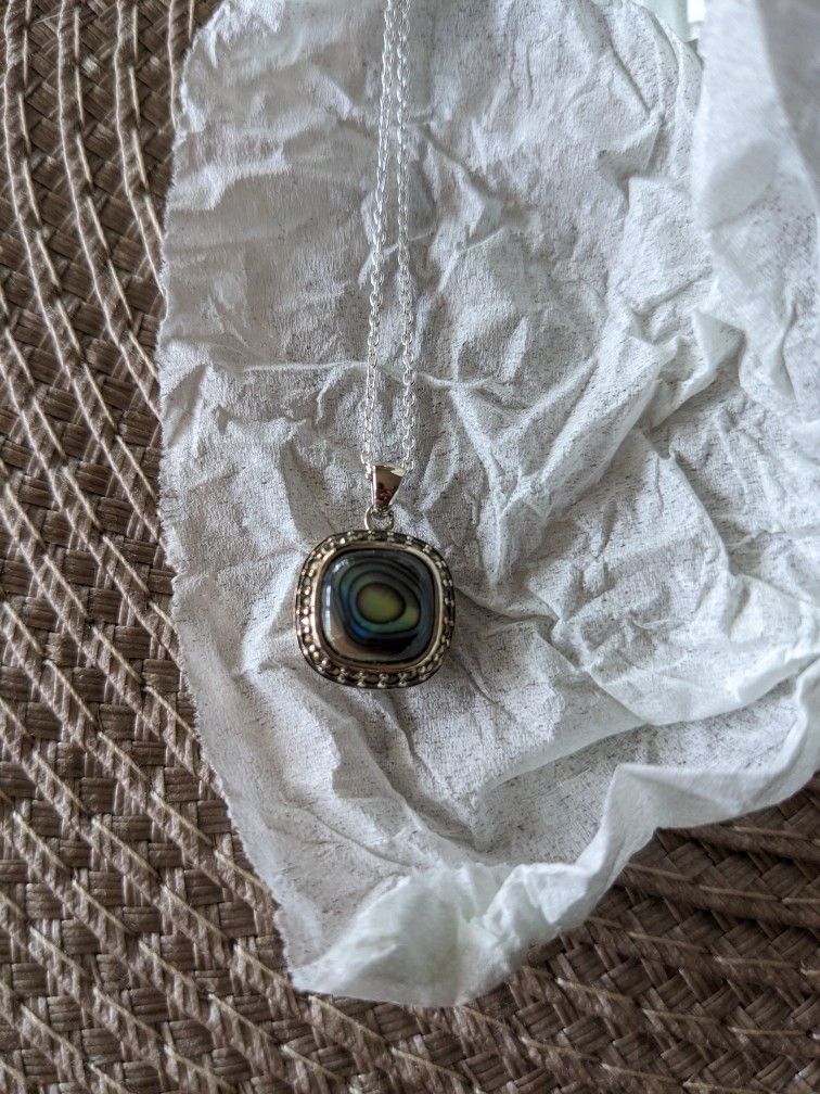 New Avon Sterling Silver Abalone with Marcasite Necklace