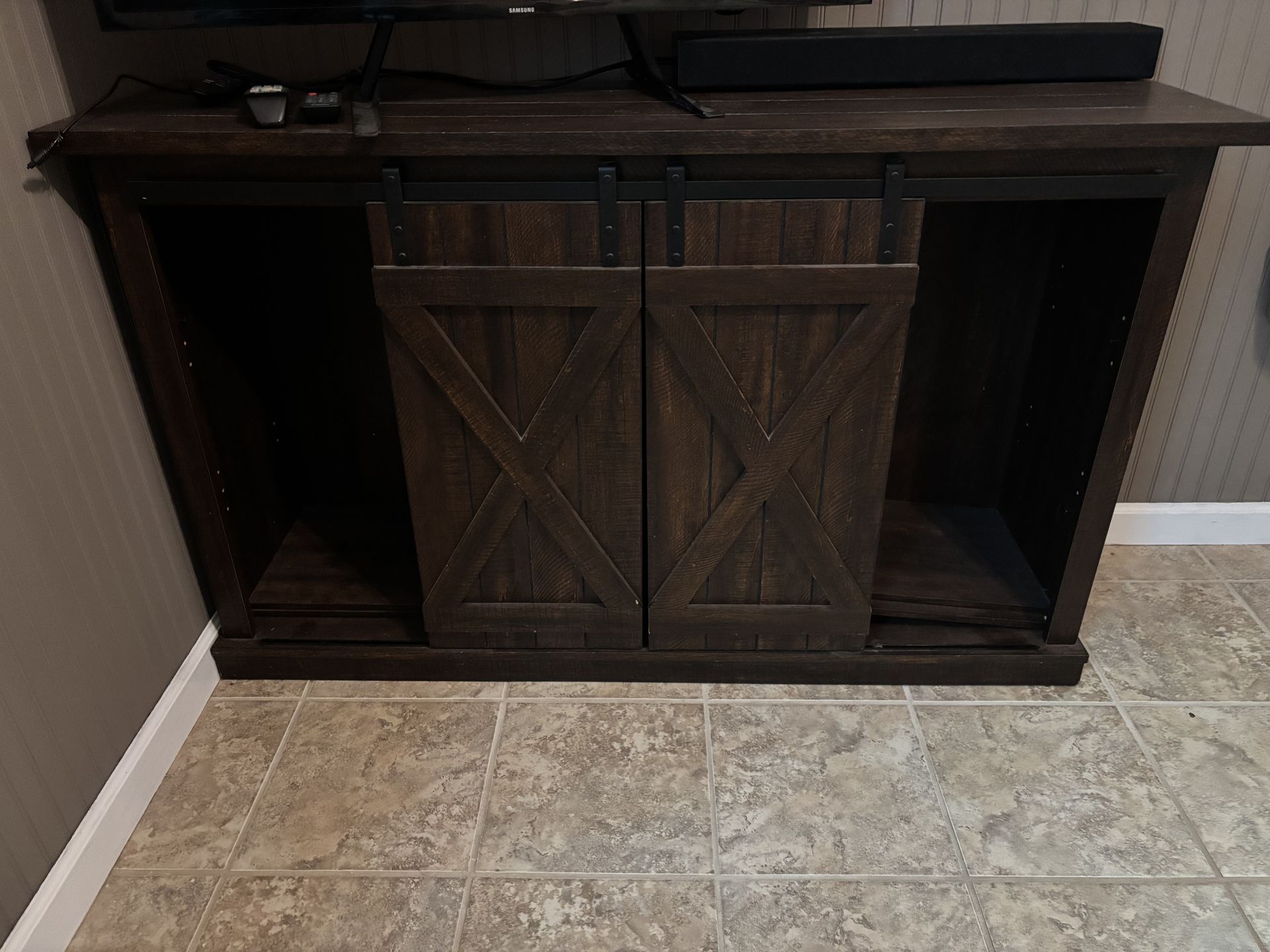 Each item is $30. All items are like new. Moving and they gotta go. Dark TV stand - $30 54”x16”x32” Light TV stand - $30 46”x14”x32” Coffee table - $30 41.25”x23.25”x18” Tv not for sale
