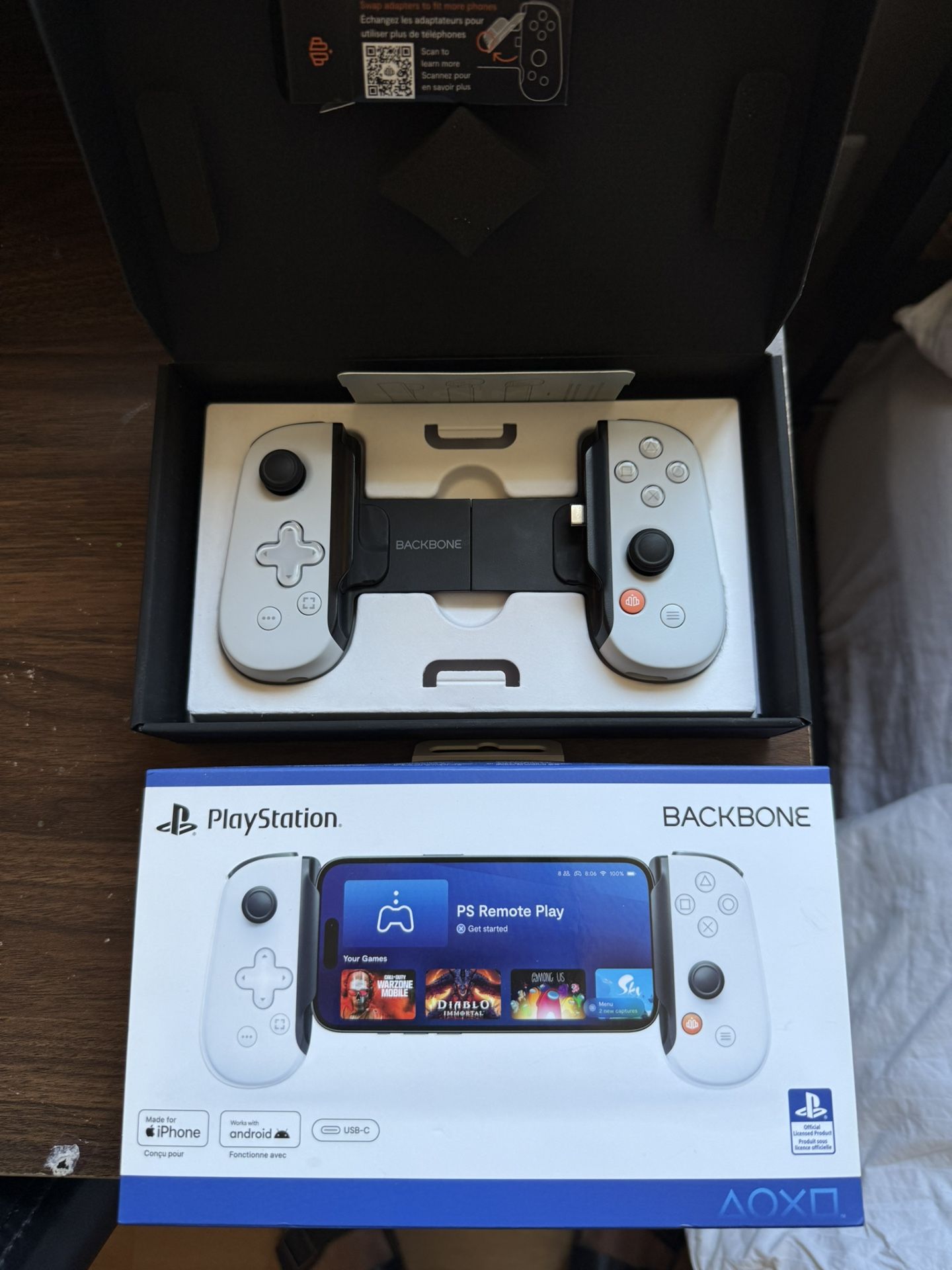 Brand new barely used Backbone PlayStation controller made for iPhone with USB-C port. Comes with everything in the box box included basically brand new need gone ASAP firm on price.