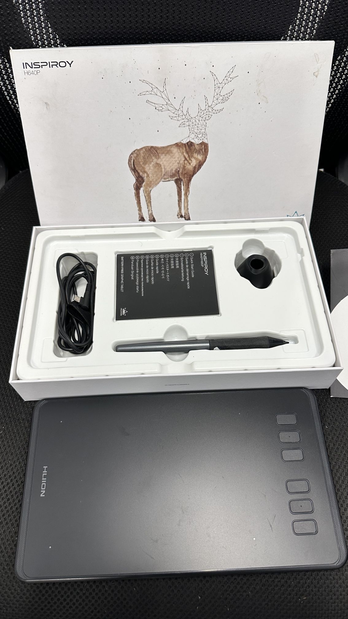 Selling a Huion Inspiroy H640P digital drawing tablet — compact, responsive, and ideal for artists, students, and educators. Includes battery-free stylus, USB cable, and original box with quick-start guide. Compatible with Windows, macOS, and many Android devices. Works with software like Photoshop, Clip Studio Paint, and more. Everything is in excellent condition and works perfectly. Great for both beginners and experienced digital artists.