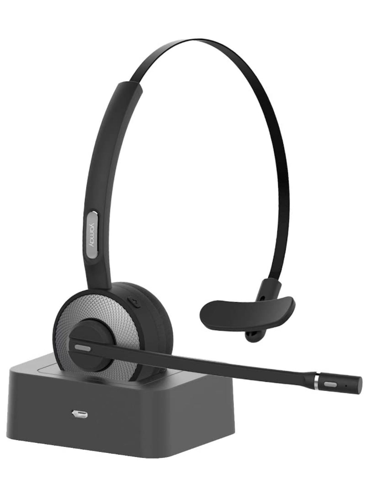 Bluetooth Headset, YAMAY Wireless Headset with Microphone (Noise Cancelling Mic) Charging Base Mute Button 19H Clear Talk Time Pro for Truck Driver Office Business Call Center Home Smartphones PC 2