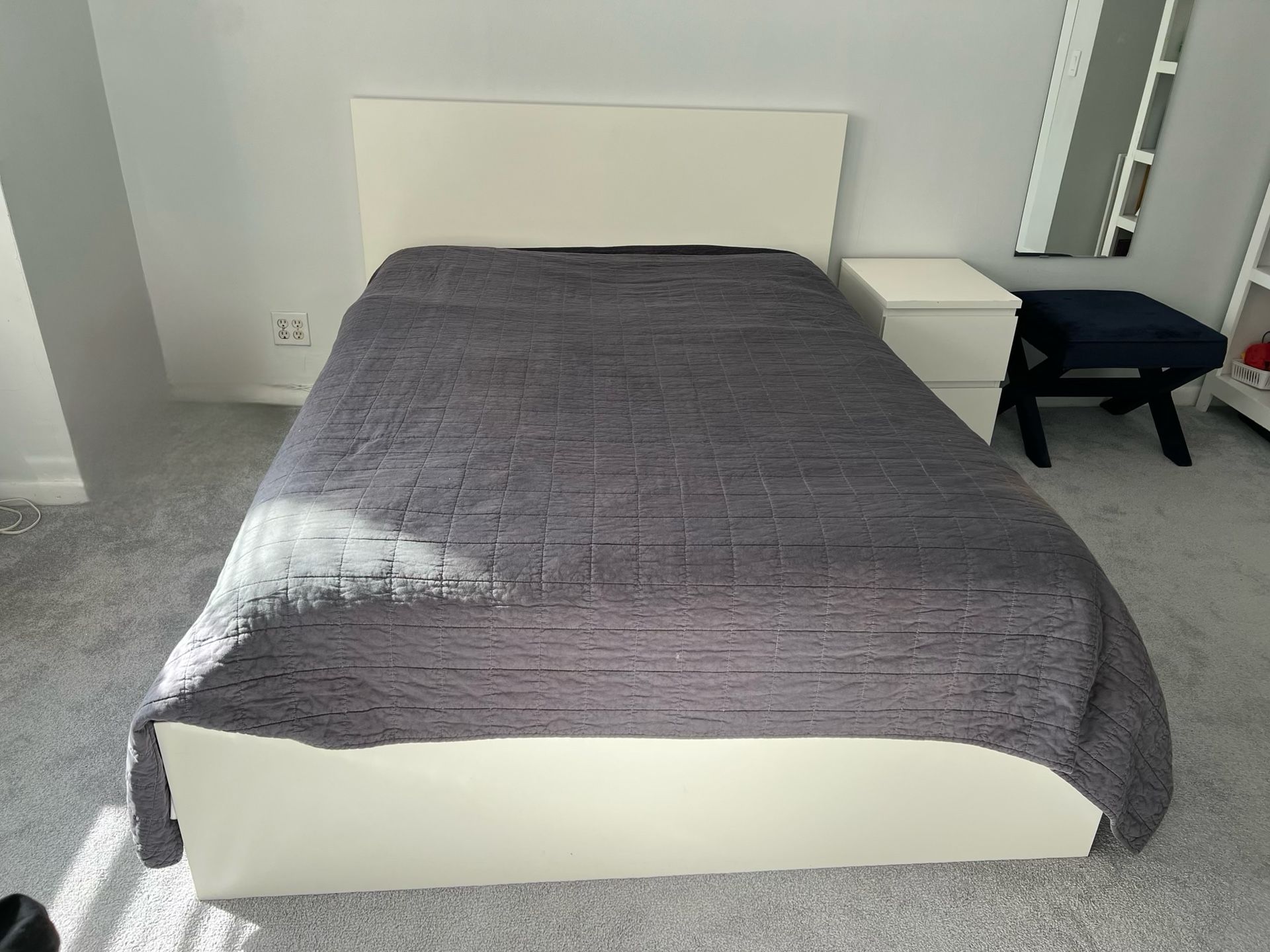 Malm full bed. Huge storage drawers. Excellent condition. Mattress too.